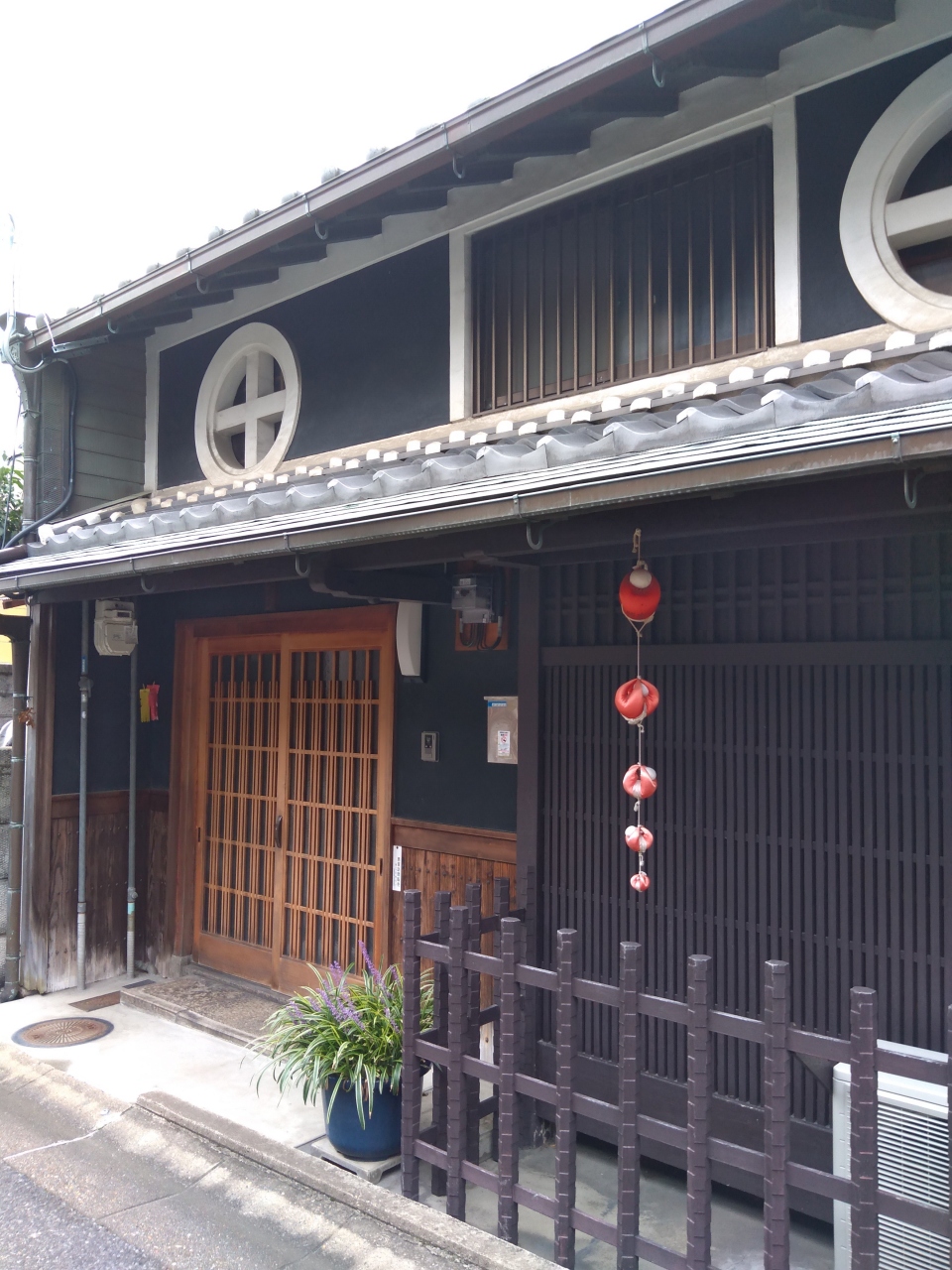 奈良駅からあるいて世界遺産である元興寺の旧境内を中心とする地域。そのあたりには庚申堂とかお寺とかがあるエリアで周辺に昔ながらの家がたちならぶエリアがあります。だいたい徒歩15分ぐらい。格子戸があり、外からは中の様子が見えにくい造りです。ならまちの軒先では赤い布でできた飾りをよく見かけますが、「庚申さん」のお使いの申を型どったお守りです。