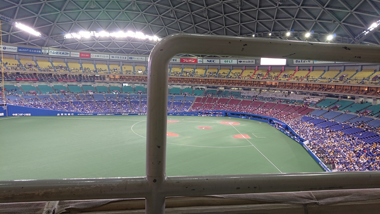 9月下旬に、2021年プロ野球セリーグ公式戦、ドラゴンズ対タイガースを観戦しました。券種はレフト側パノラマB席。座席位置は、バックスクリーンの大型ビジョンにやや近い側の最前列でした。パノラマB席は、ビジョンが見切れる又は見づらい座席も含まれますが、当該座席からは、ビジョンも比較的良く見え、問題はありませんでした。ただ、最前列であっても、視界にに、一部、手すり風の突起が入る席があり、今回はそうした席でしたので、その点は多少ストレスでした。全般的には最前列なので、他のお客さんに視界を遮られることがほぼ無く、快適な観戦体験だったと思います。試合も、最終回に、タイガースの外国人のストッパーから、ドラゴンズの大ベテラン打者が、同点二塁打を打ち、引き分けとなるという、接戦で、面白かったです。