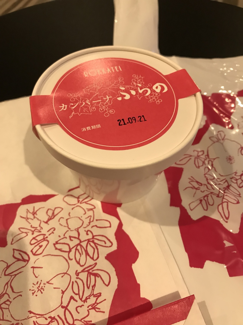 期間限定の「カンパーナふらの」があったので購入しました。賞味期限は、冷蔵で1日~2日と日持ちはしない商品です。ぶどうをホワイトチョコレートでコーティングしているお菓子で、富良野にあるカンパーナ六花亭で収穫されたぶどうを使っています。7月にカンパーナ六花亭に行っていただけに格別の思いでいただきました。生のぶどうを使っているので、瑞々しくて美味しかったです。