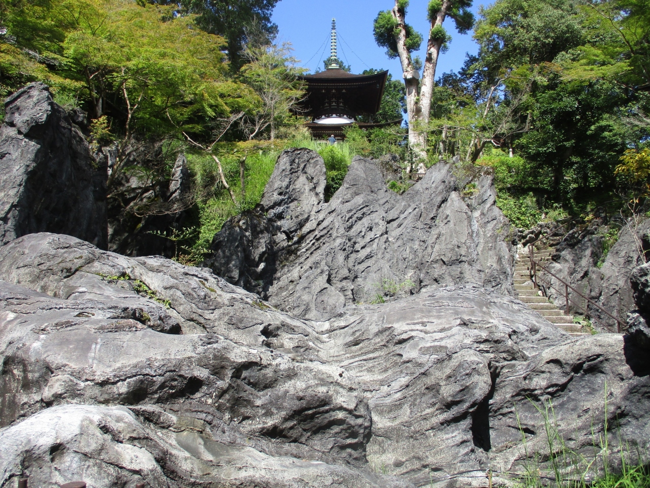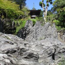 京阪石山寺駅より瀬田川沿いに10分ほど歩くと石山寺の東大門に着きました。中は広く、特に多宝塔の下にある硅灰石が見ごたえあります。境内全体が硅灰石の上に建っていて、とても珍しいと思いました。紫式部が「源氏物語」を執筆したと伝わる本堂の「源氏の間」も見どころです。