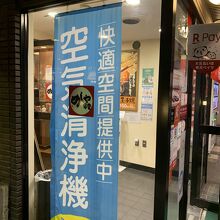 お店の入り口に大きく『快適空間提供中 空気清浄機 設置中』