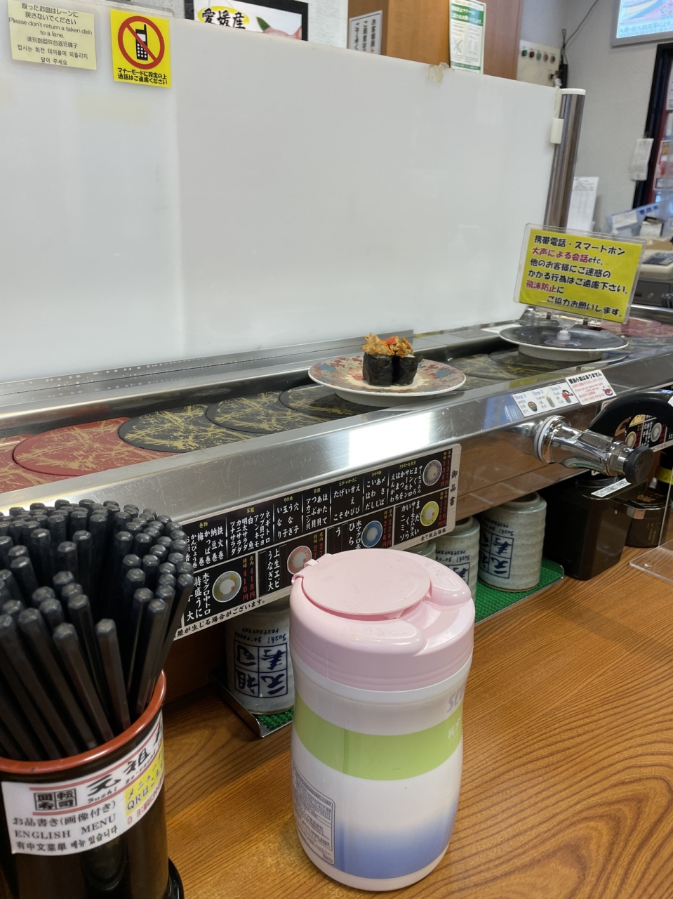 お昼にお酒をいただき、最後にごはんものを食べたくなり磯丸水産の隣の回転寿司に。回転寿司だと適当に食べれて値段燃やすい。サクッと食べて帰るにはベスト。新宿南口にある回転寿司ですが便利な場所にあり美味しいです。