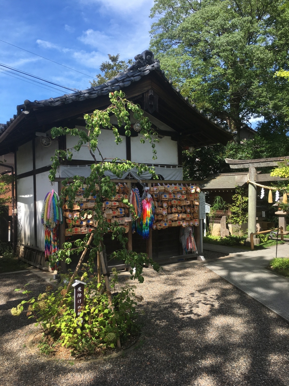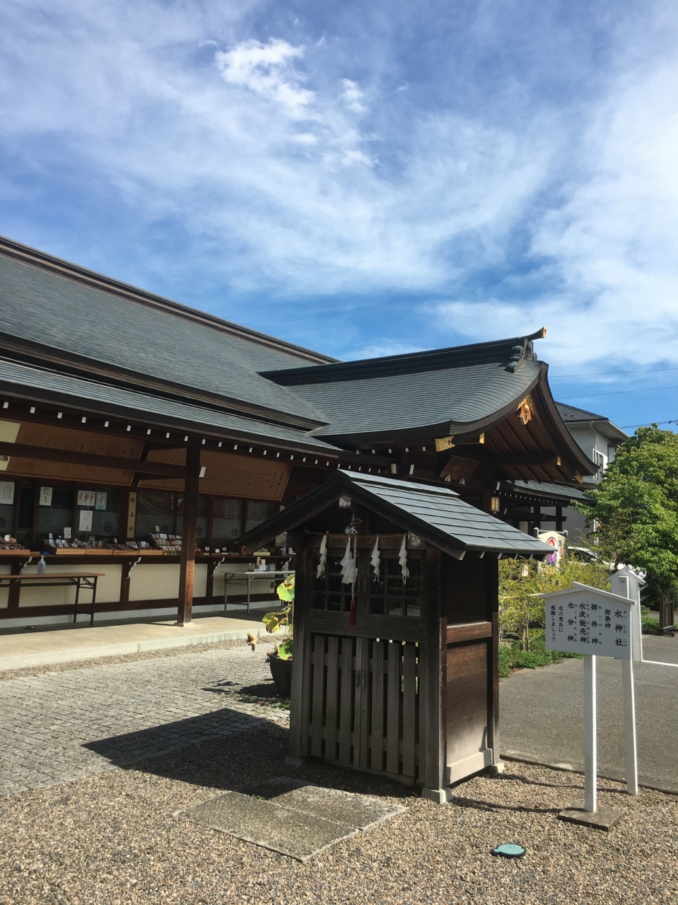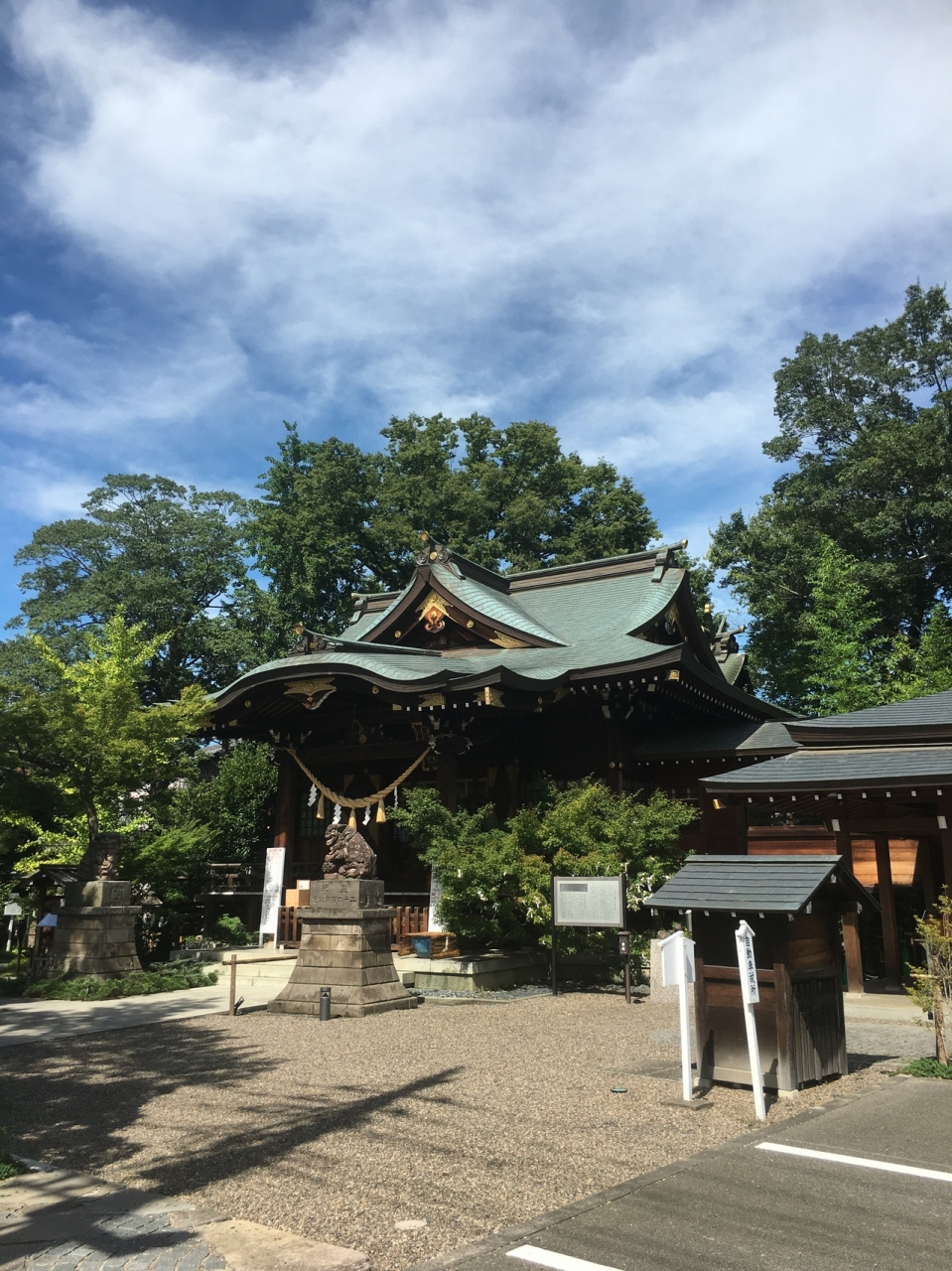 駐車場が社務所の前にあり、お守り等がたくさんありました。敷居がないので出入りしやすい境内で、末社のような小さな神社がいくつかあり、木々に囲まれて、多くの絵馬や千羽鶴が奉納されていました。社殿が格式ある建物でした。