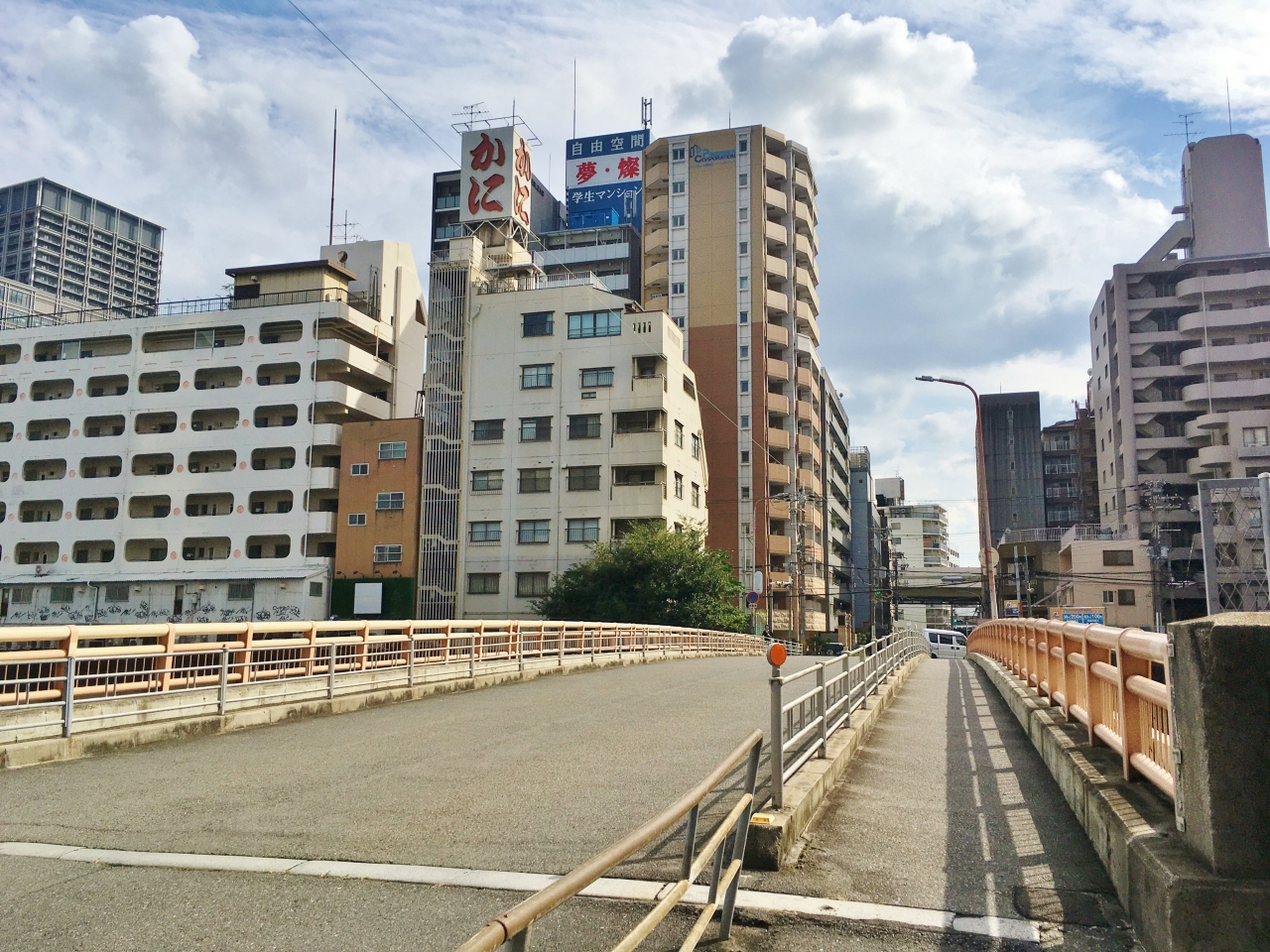 道頓堀川に架かる橋の一つで、四つ橋筋となにわ筋の間にあります。堀江一帯の開発に伴い幸橋、汐見橋、日吉橋と共に架けられました。外観もこれといった特徴もないごく一般的な橋で、地元の方が生活に利用しているような感じです。