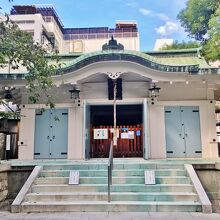 アメリカ村の近く、ビルに囲まれた一角にあります。古い歴史を持つ神社ですが、創始については諸説あり明確な文献などは残っていないそうです。1945年の大阪大空襲で本殿・拝殿が焼失し、現在の社殿は1960年に再建されました。想像以上に広い境内には緑も多く、周囲の喧騒喧騒とは打って変わり静かでした。