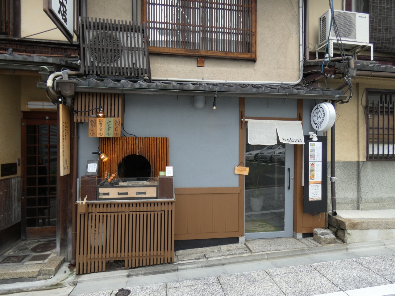 高台寺の参道から石塀小路に入る手前にあるこじんまりと可愛らしい甘味処。店頭にみたらし団子・よもぎ・きなこと書いたメニュー看板が掛かっています。焼立てのみたらし団子をテイクアウトして食べました。タレも上品な醤油味で美味しかったです。店内でも食べられます。