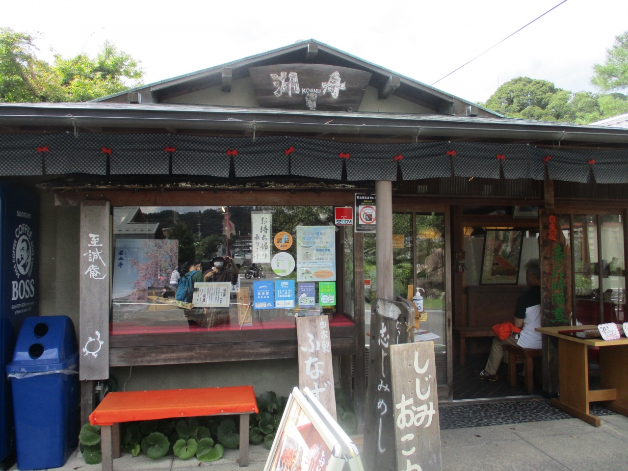 石山寺の門前にある、名物のしじみ釜めしや炭火焼きうなぎなどがいただけるレストランです。茶屋のような雰囲気です。最初こちらで昼食をとろうと思いましたが、お客さんがいっぱいでした。店頭でしじみおこわのパックが販売されていて、後で買おうかなと思ったのですが、後で訪れるともう品切れでした。先に買っておけばよかったです。