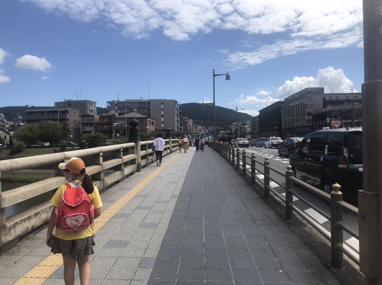 京都の五条通りと鴨川に架かる橋です。ここは、弁慶と牛若丸が出会ったことで有名な橋です。現在は往復8車線(右折レーン込み)の広い橋です。橋の西詰には『扇塚』があり、更に西には牛若丸と弁慶の像があります。