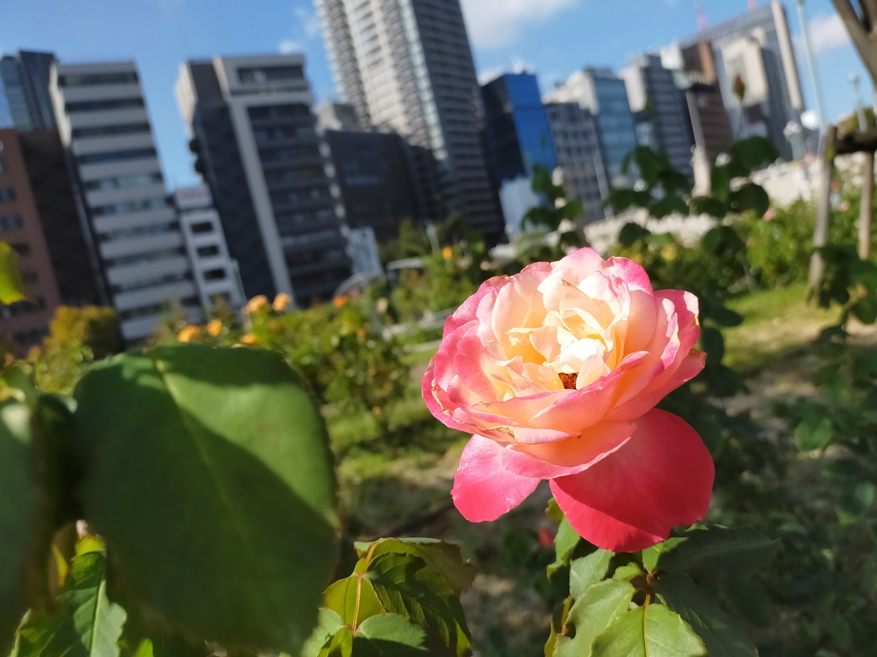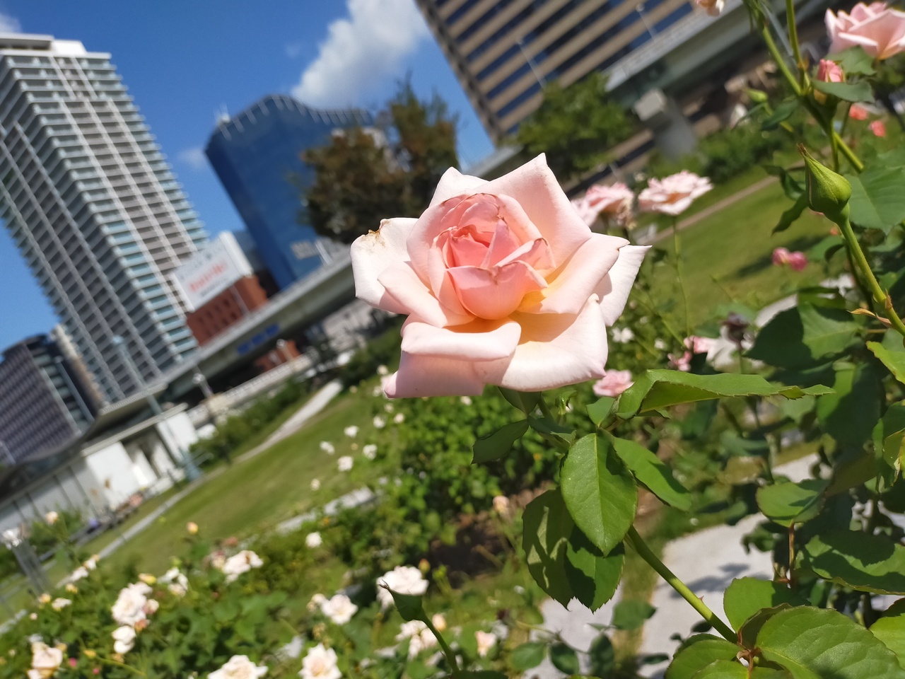 大阪メトロの北浜駅から歩いてすぐの場所にあるバラ園。ライオン橋こと難波橋から降りてすぐです。10月4日はまだ秋バラの走りの時期でしたが、色とりどりの花が咲いていました。花に顔を近づけると、とてもいい香り。リラックスできます。