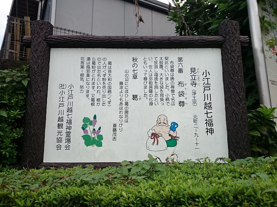 正式な七福神めぐりではありませんが、2019年9月の川越散策時、小江戸川越七福神めぐりの7寺院を参拝しました。毘沙門天の妙善寺、寿老人の天然寺、大黒天の喜多院、恵比寿天の成田山、福禄寿神の蓮馨寺、布袋尊の見立寺、弁財天の妙昌寺の7寺院です。途中いろいろな観光スポットに寄りながらだったので、相当な距離を歩いた気がします。