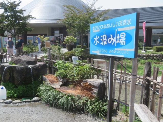 国道20号線甲州街道、北斗市の白州町にある道の駅です、名水で知られる白州らしく無料で水を汲むことが出来る場所があります、ぜひ、空のペットボトルを持っていくことをお勧めします、無料で美味しい水をゲットできます、建物内では周辺の農産物の直売があります、レストランや敷地内にスーパーもあります、バラが咲くと綺麗です。