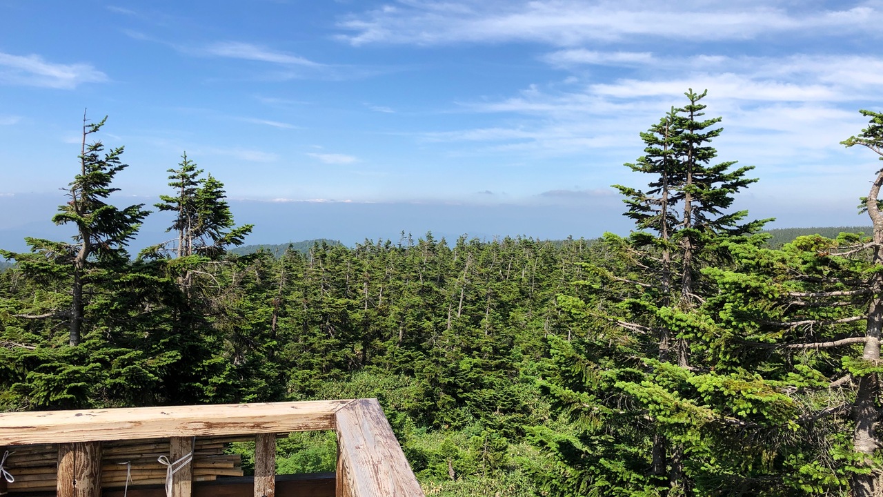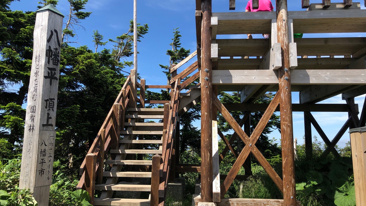 岩手県・秋田県にまたがっています。八幡平レストハウスから、自然探勝路を20分ぐらい歩いたところに木製の展望台があり、そこが標高1613mの山頂です。険しい山というよりは、なだらかな平原のような風景が広がります。八幡平レストハウスまでは車でアクセスできるので、気軽に訪問できます。