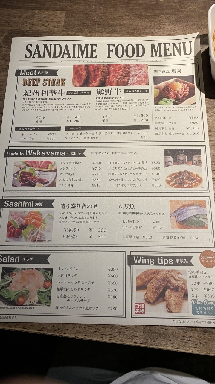 たまたま見つけました。クラフトビール専門店。もちろん一通りお酒の種類はあります。地場産くじら料理、牛肉、熊本馬刺などメニュー豊富です。和歌山のクラフトビールも種類豊富です。桃、すだちビールなどあります。