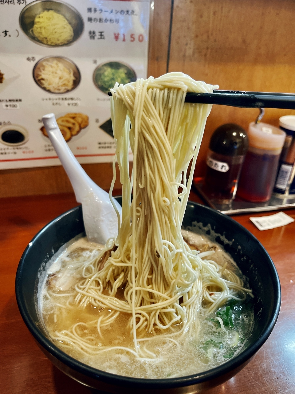 コチラは1993年創業した福岡でも人気ラーメン店!で一風堂や一蘭のようなラーメン大企業とまではいかないが〜海外展開もされたりと「初代だるま」と共に福岡豚骨ラーメン会を背負って行くレジェンド的存在でもあります。