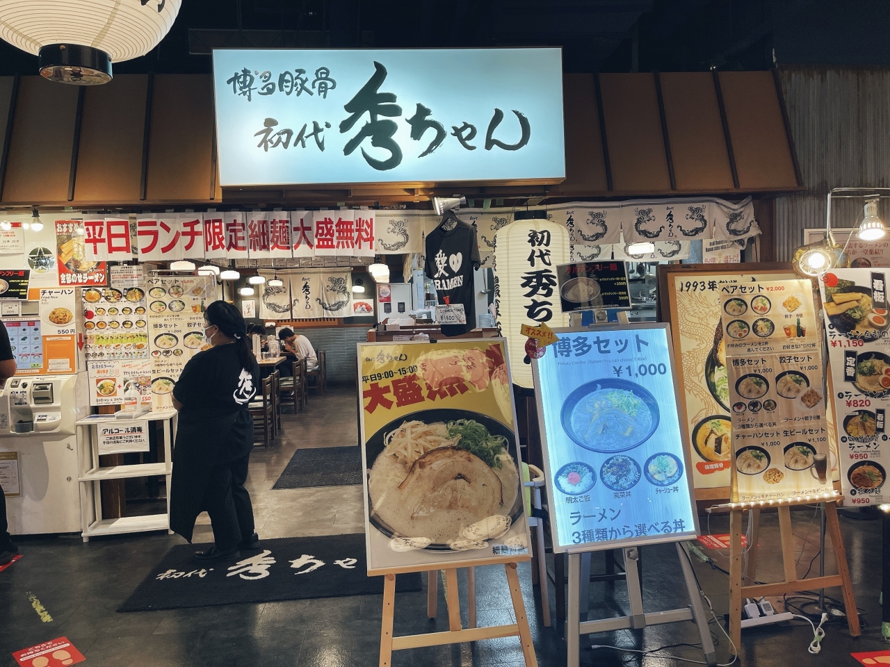 「秀ちゃん」と言えば・・・警固だったよねって!ラーメン好きは一度は訪れたことであろうが暖簾分けとして現在は秀ちゃんラーメンを受け継ぐ「とんぼ店」として営業されている〜ココ「ラースタ」には2011年「初代だるま」との入れ替わりで登場し今に至りますが福岡で直営の「初代秀ちゃん」はこちらだけです。