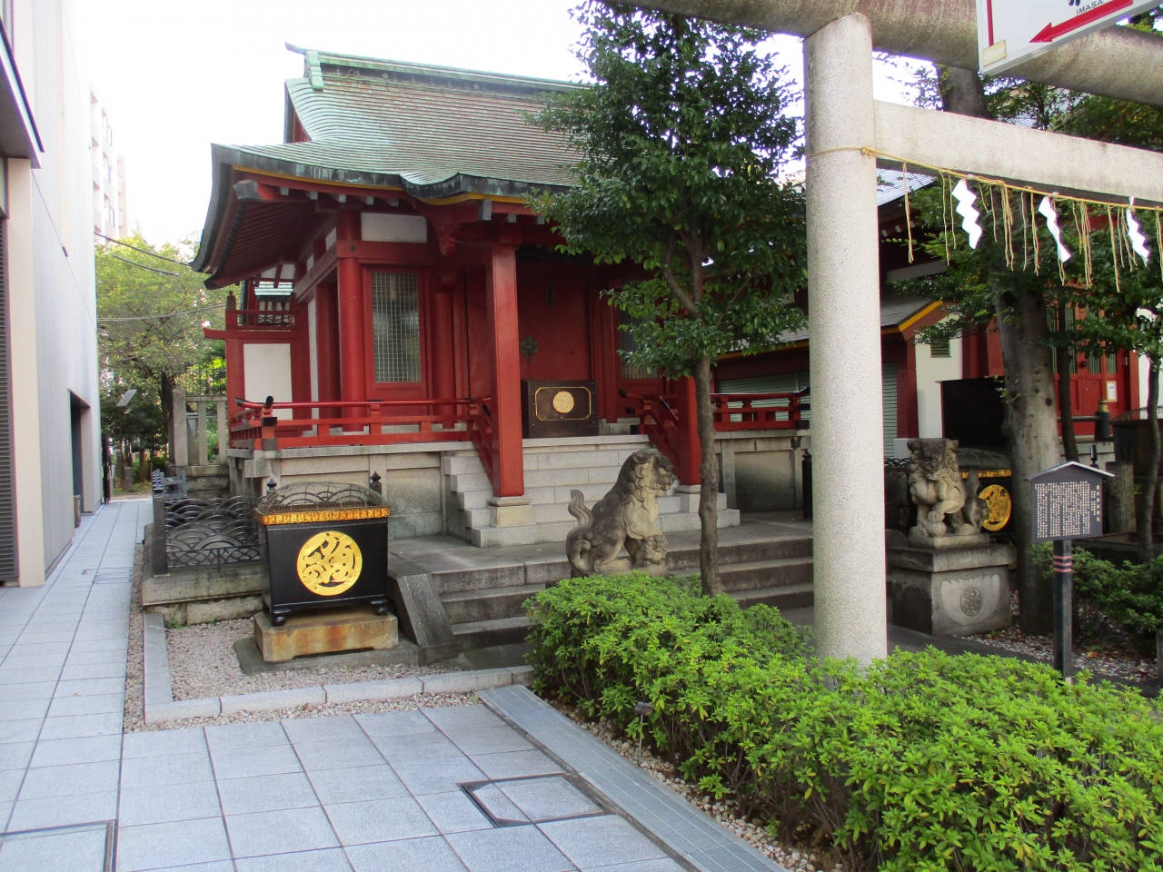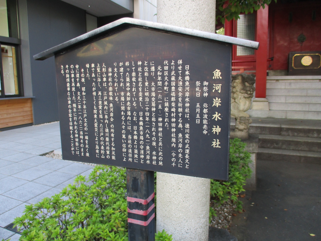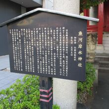 神田明神の境内には、他にたくさんの小規模な神社が祀られていますが、魚河岸水神社もそのうちの一つでした。お社の手前両側に、かな神田明神の境内には、他にたくさんの小規模な神社が祀られていますが、魚河岸水神社もそのうちの一つでした。お社の手前両側に、かなり強そうな顔立ちの狛犬が置かれていて、しっかりと神社を守っているような感じでした。魚市場関係の方たちが、大切にしている神社だと思いました。