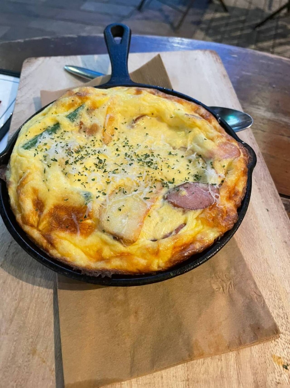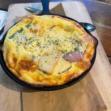 様々なメニューを食べましたが、オムレツがとても気に入りました。卵がとてもふわふわで、野菜もたっぷり入っていました。鉄板というかフライパンのまま提供されるので比較的長く熱々で食べられたのもよいなと思います。