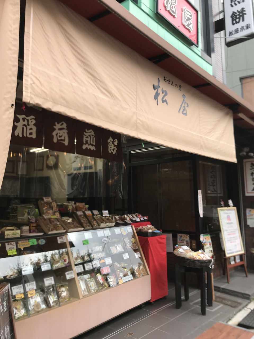 こちらは、「おまん屋さん」ではなく、「おせん屋さん」です。看板商品は、伏見稲荷にあるということで、松屋オリジナルの可愛いキツネの顔をした玉子煎餅です。でも美味しそうだったのは、そら豆の現物が入っているお煎餅でした。そら豆入りって初めて見ました。美味しいですよ。