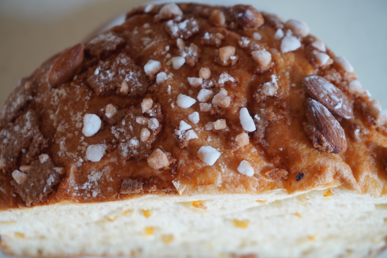 玉出 木村家は、活気のあるパン屋さん。あれこれお勧めのパンの説明を積極的にしてくれるのにも乗せられて大量買するお客さんも多いですね。私は評判のヴェネチア―ナをいただきました。シュガーと丸ごとアーモンドのトッピングもけっこう大胆ですが、やっぱりオレンジピールを練りこんだふわふわ生地の軽さが特筆かな。一人で半個くらい一気に食べてしまいそうでした。