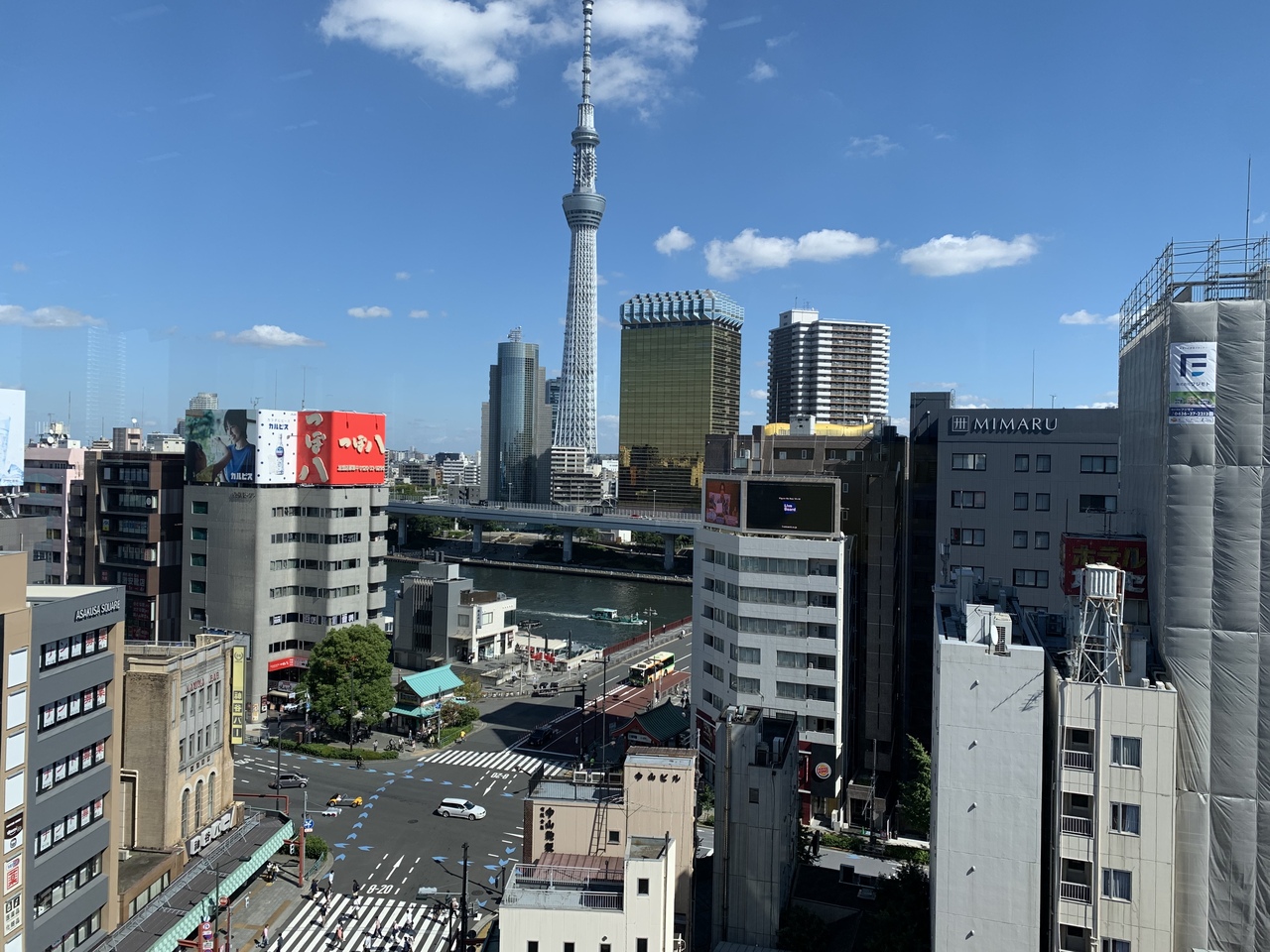なにしろ無料ですし、カフェは西側、展望台は東向きでスカイツリーも見えるからです。