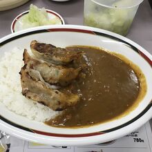 定番の餃子カレーを注文。名前の通りカレーに餃子がトッピングされている。餃子は薄皮。肉が多いが、カレーにあうようスパイスが入っている感じ。カレーに付けて食べても、醤油だれに付けて食べても良い感じ。またカレーはスパイシーだが、牛乳が入っているせいなのか家庭的な感じもする。具は細かく餃子との愛称も良い。