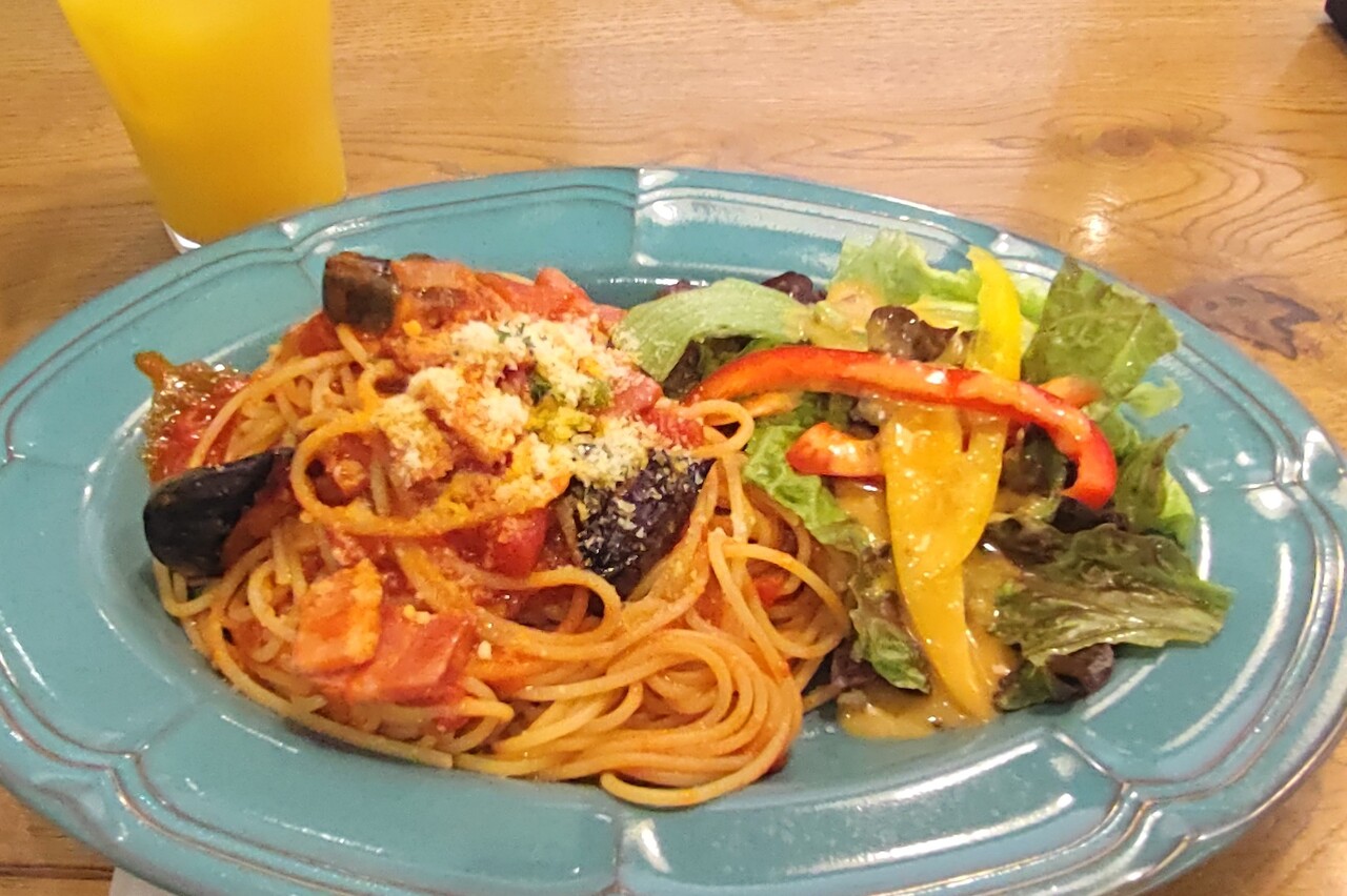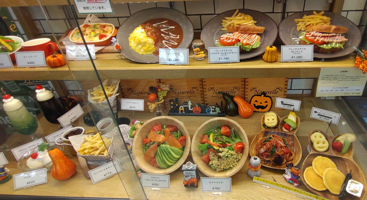 小田急百貨店11階にあるカフェレストラン。店頭のメニューサンプルはハロウィンの小物で可愛らしくディスプレイされていた。お一人様用の店内真ん中のアイランドテーブルは片側3箇所コンセントあり。ランチセットのパスタとドリンクセットで1,630円(税込み)お子様向けメニューもあるのファミリー層も入りやすい。