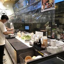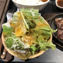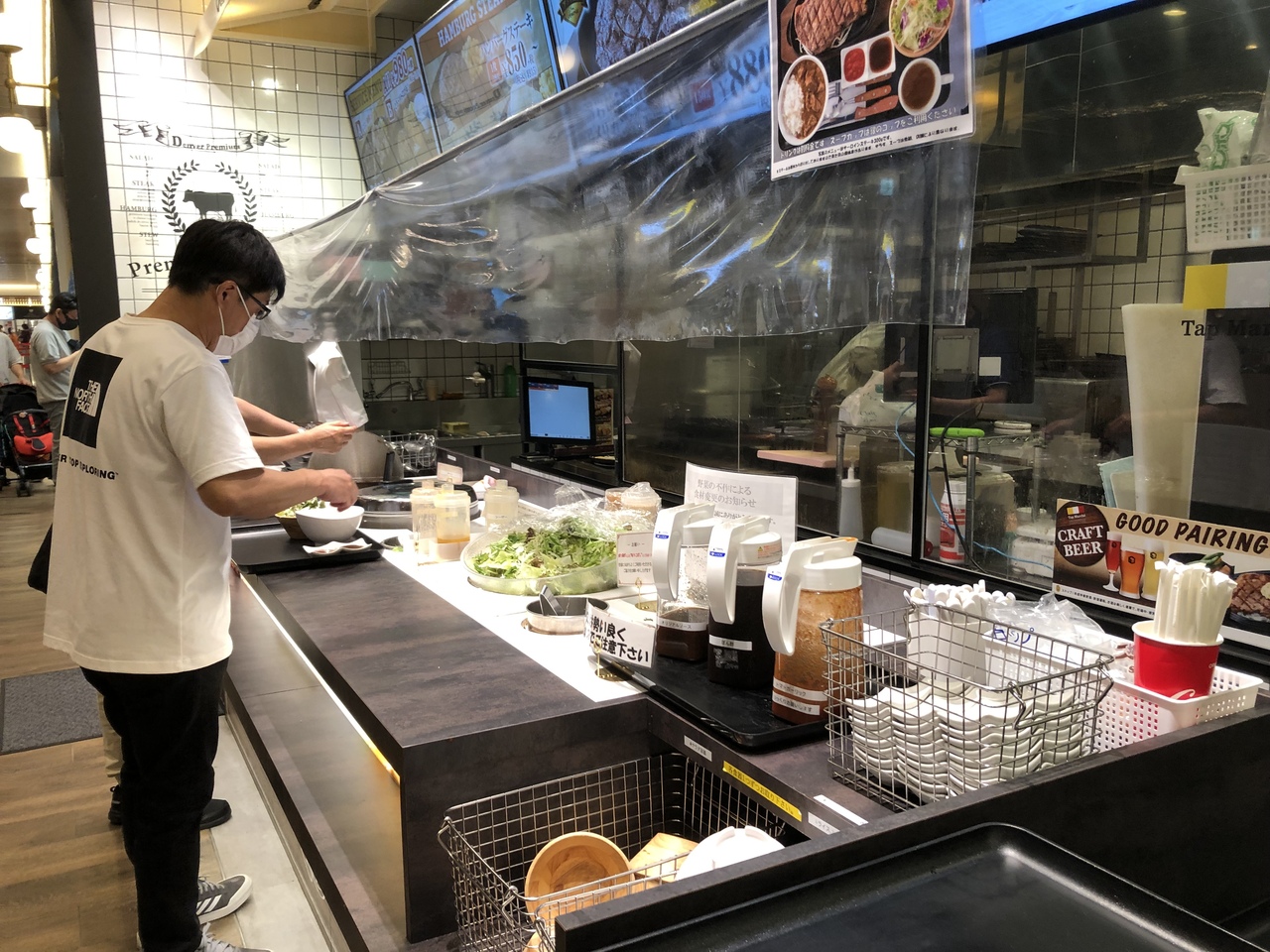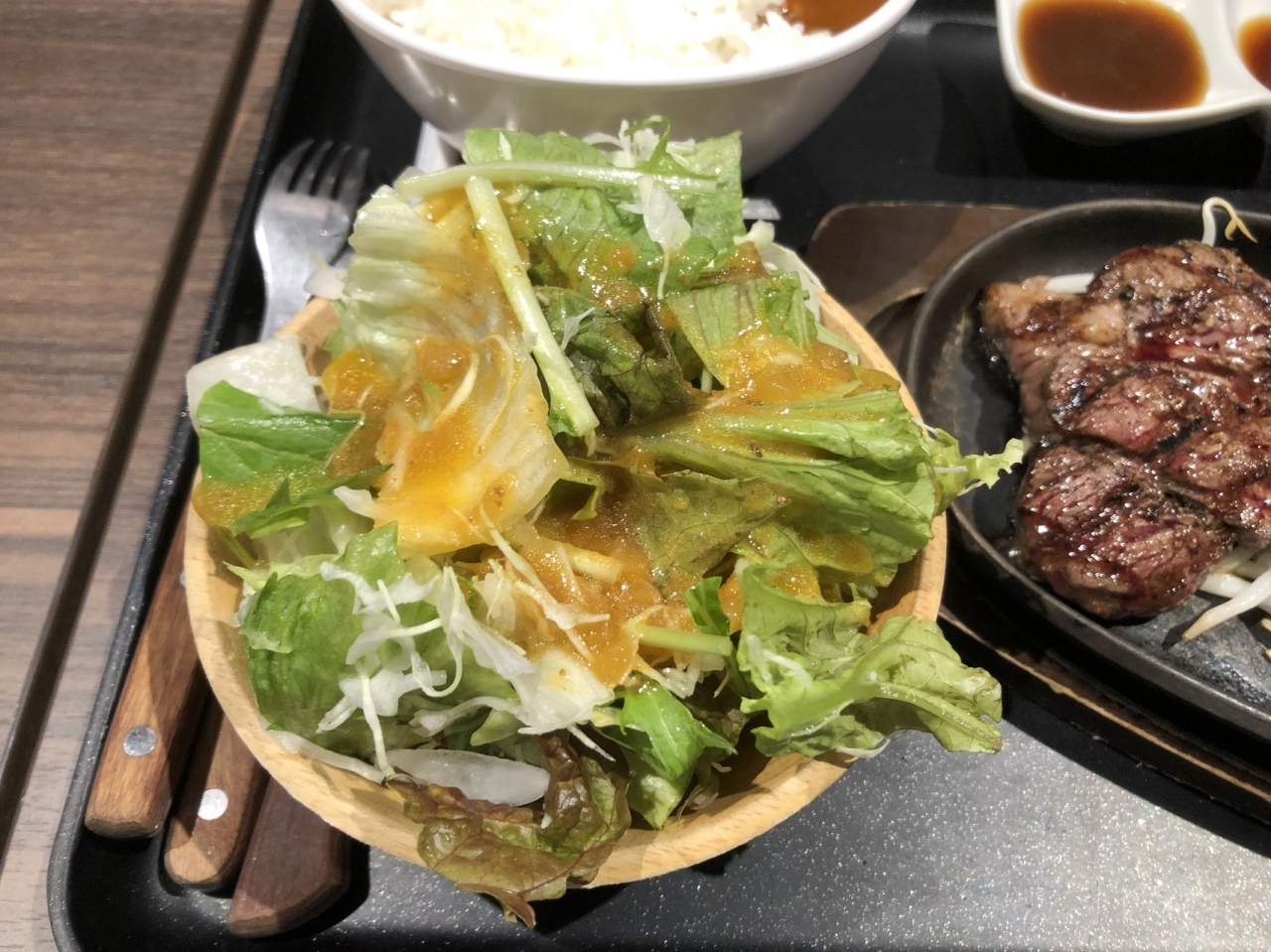 有明ガーデン5階のフードコートにあるステーキ店。こちらのお店は、フードコートのお店なので、ステーキもしくはハンバーグなどを頼むとライス・カレー・スープ・サラダ盛り放題付きとなる。一回のみのサービスですが、サラダ、ライスともにお皿が大きく、かなり盛れるので大食漢の方でも満足度は高いと思う。溶岩焼ステーキは、150g、880円(税抜)~なのでコスパはかなり良い。