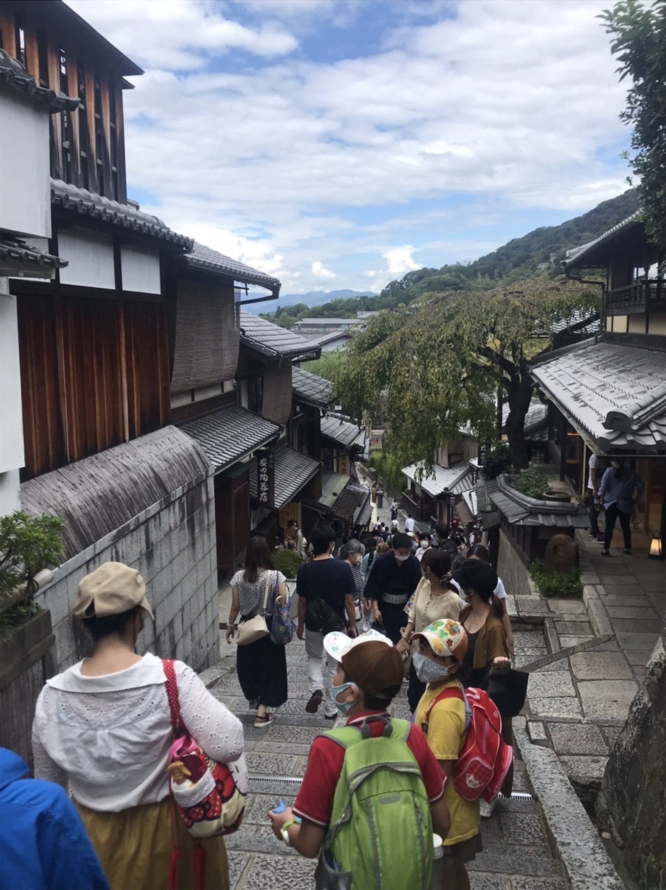 清水寺へと続く坂です。産寧坂に合流しています。石畳の細い路地に昔ながらの京都の住居・京町家が並んでおり、まるで時代劇の世界に入り込んだような雰囲気です。飲食店や土産物屋も多く、散策していて楽しいスポットです。