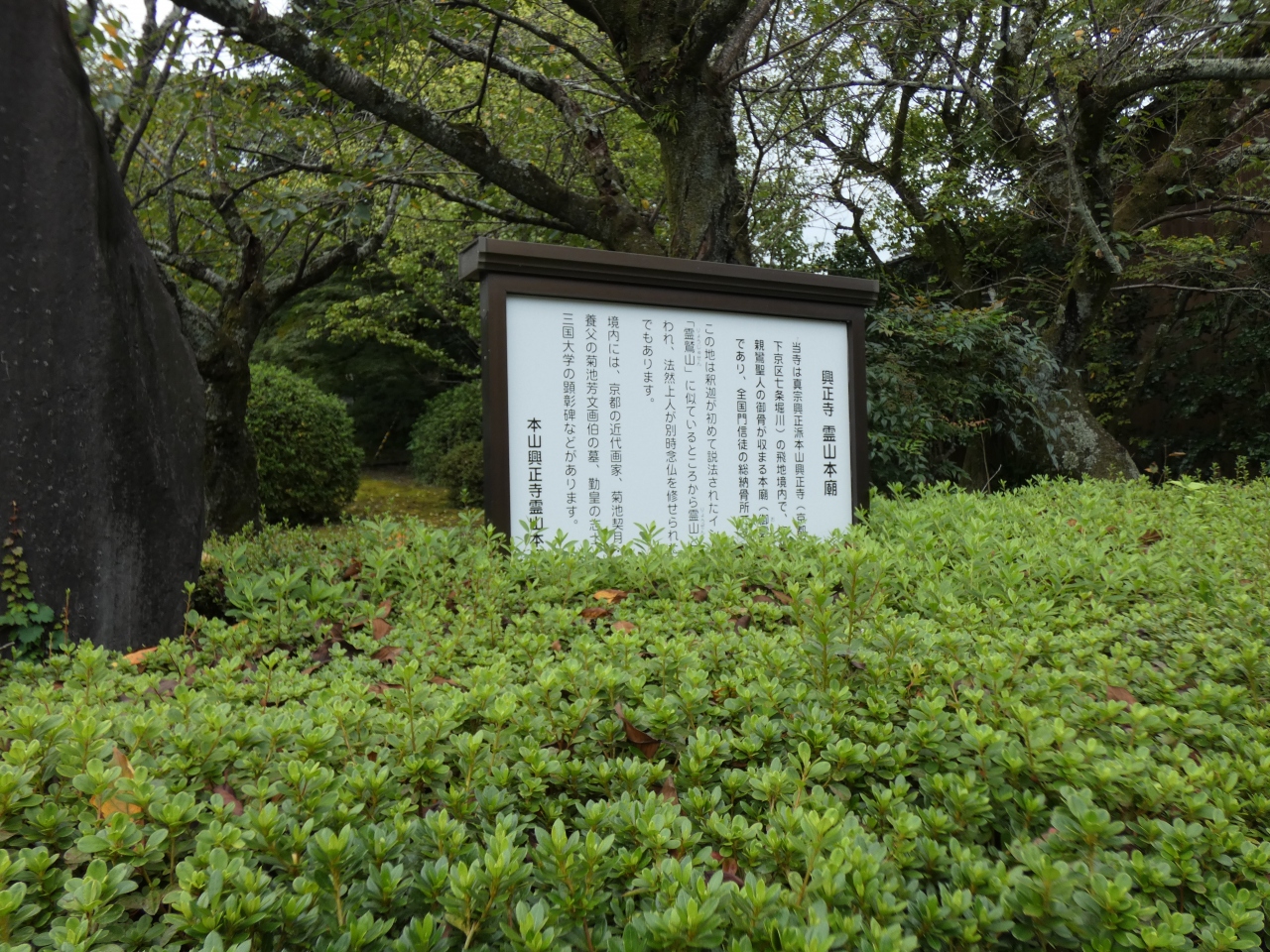東山三十六峰の一つ霊山の麓に二年坂の途中を入った所にある真宗興正寺派の廟所。浄土真宗宗祖・親鸞聖人の廟所であり、全国の門信徒の納骨所でもあります。寺域一帯は森の中にあり自然の風光に恵まれています。明治9年(1876)興正寺が浄土真宗本願寺派から独立し、真宗興正派を結成してこの地に本廟を建立したそうです。観光地の中で静寂の空間です。