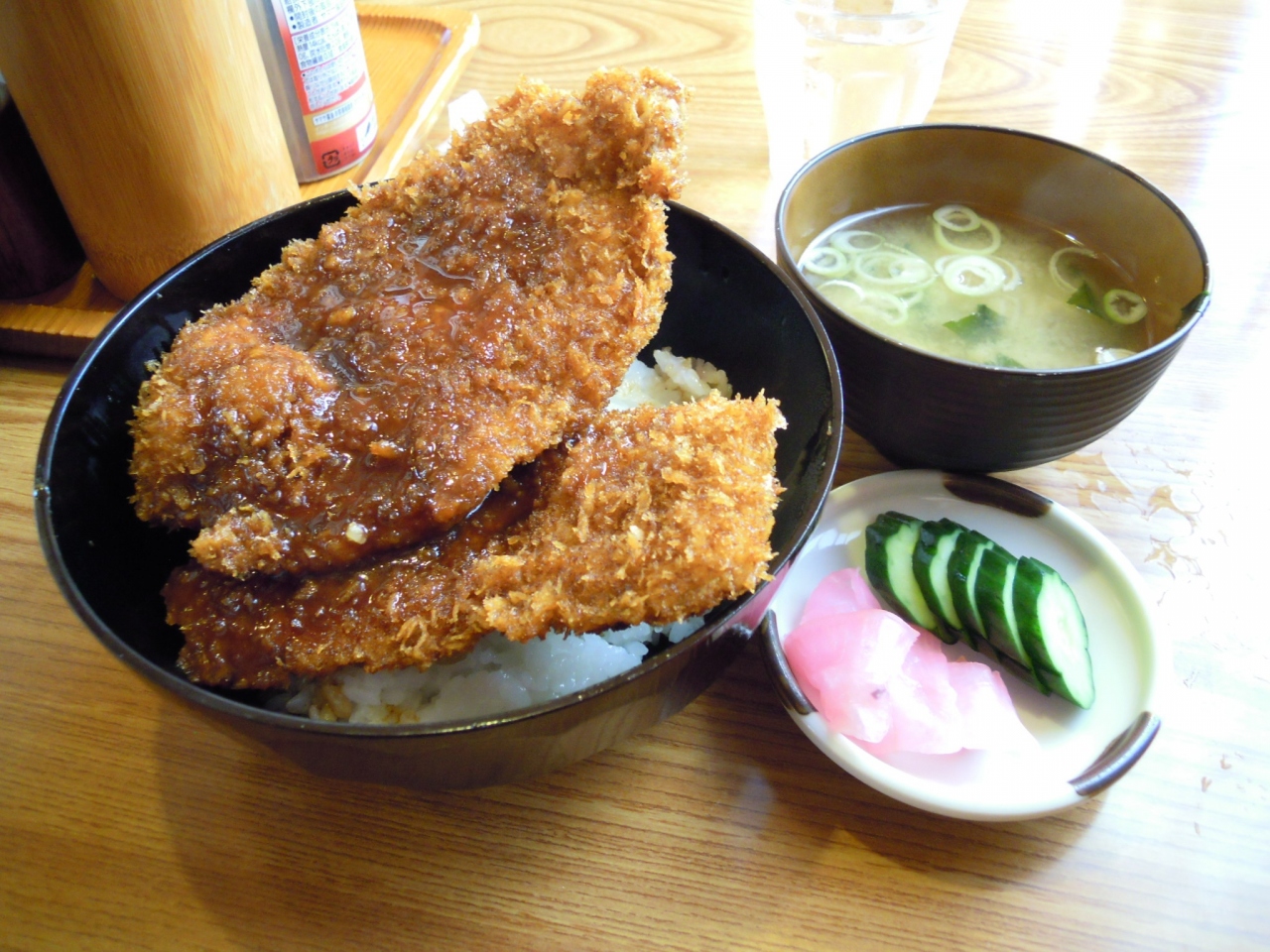 この店の一押しは「わらじカツ丼(900円)」。どでかく、分厚いカツを「わらじ」に見立てて2枚も入っている丼。食べ切れず持ち帰ることも可能。