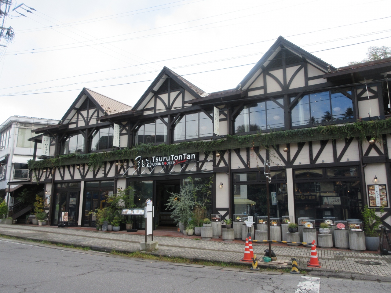 のど越しが良いうどんで知られる人気店が今年8月に旧軽井沢銀座入口近くに開店しました。ワンちゃん同伴で利用できるテラス席を含めると180席ほどになる大きな店舗で、外観も店内もシックな造りになっています。これまでも食べられた定番のうどんだけでなく、信州の食材を使った軽井沢限定のうどんもあります。土鍋料理や一品料理もあり、バーエリアも設置されていて、夜の軽井沢をアルコールと共に過ごすことができます。店から600mほど離れたところに建つtwin line hotelのスペインレストランと提携していて、宿泊者は夕食を2つのレストランから一方を選ぶこともできます。