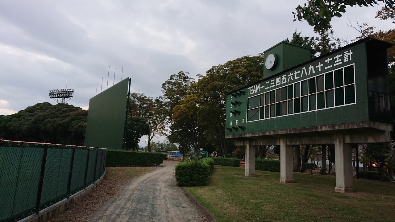 豊川市の市街地に立地する公園です。市街地の公園としては、結構広い敷地面積を有しているな、と感じます。10月上旬の夕方に訪問しました。今回特に印象に残ったのは、野球場。座席付きのスタンドこそ少ないですが、グラウンド部分は大変立派で、外野側からホーム側を眺めて、その広さに圧倒されました。