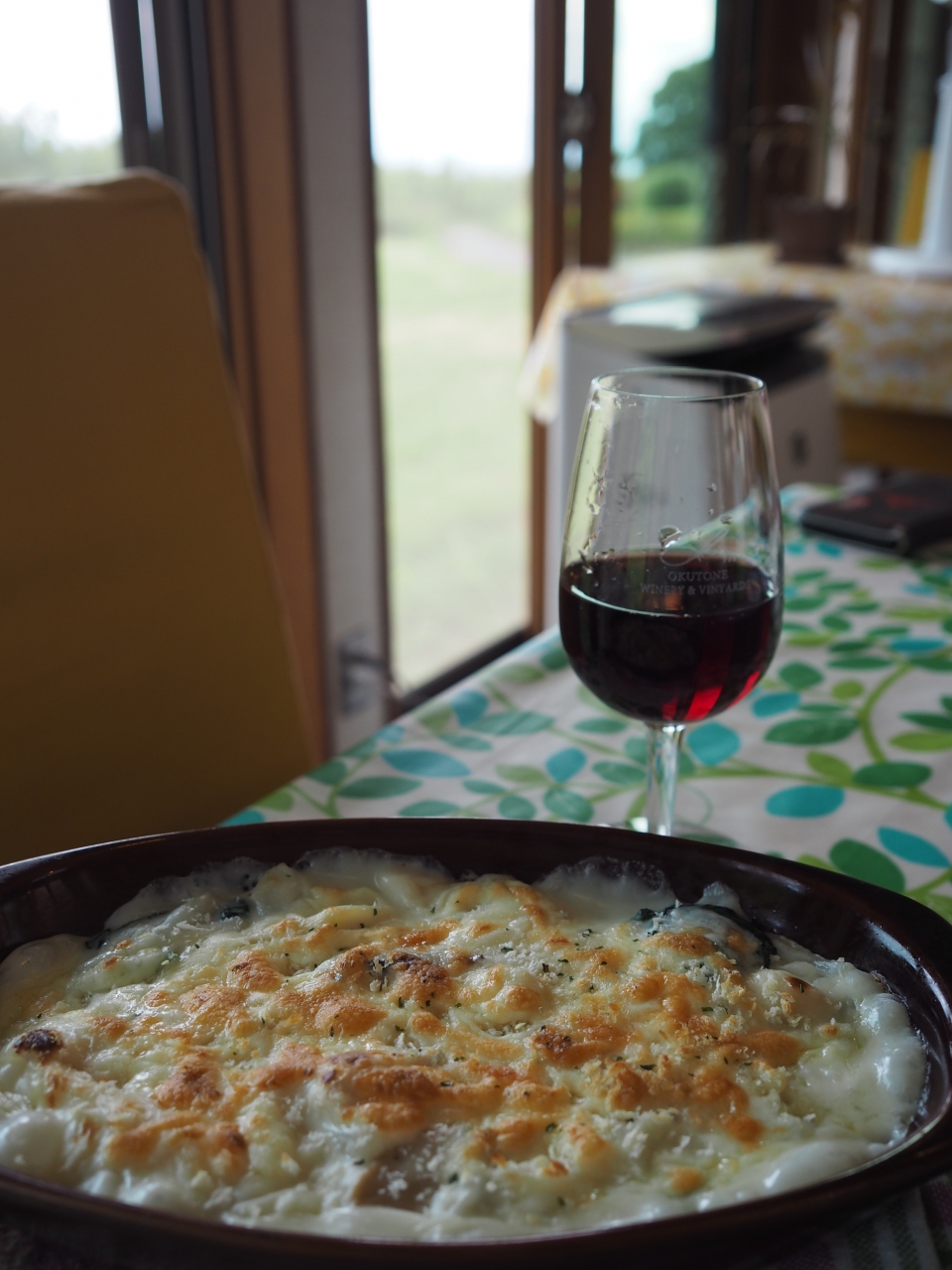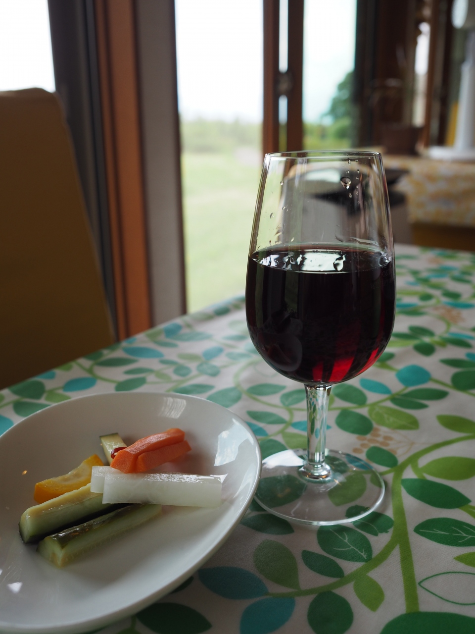 グラスワインは400円くらいからありましたが、100%自社畑産の葡萄を使っているというメルローにしました。700-800円くらいだったと思いますが、ここで育てたメルローでこんなに美味しいワインができるのかと感動しました。