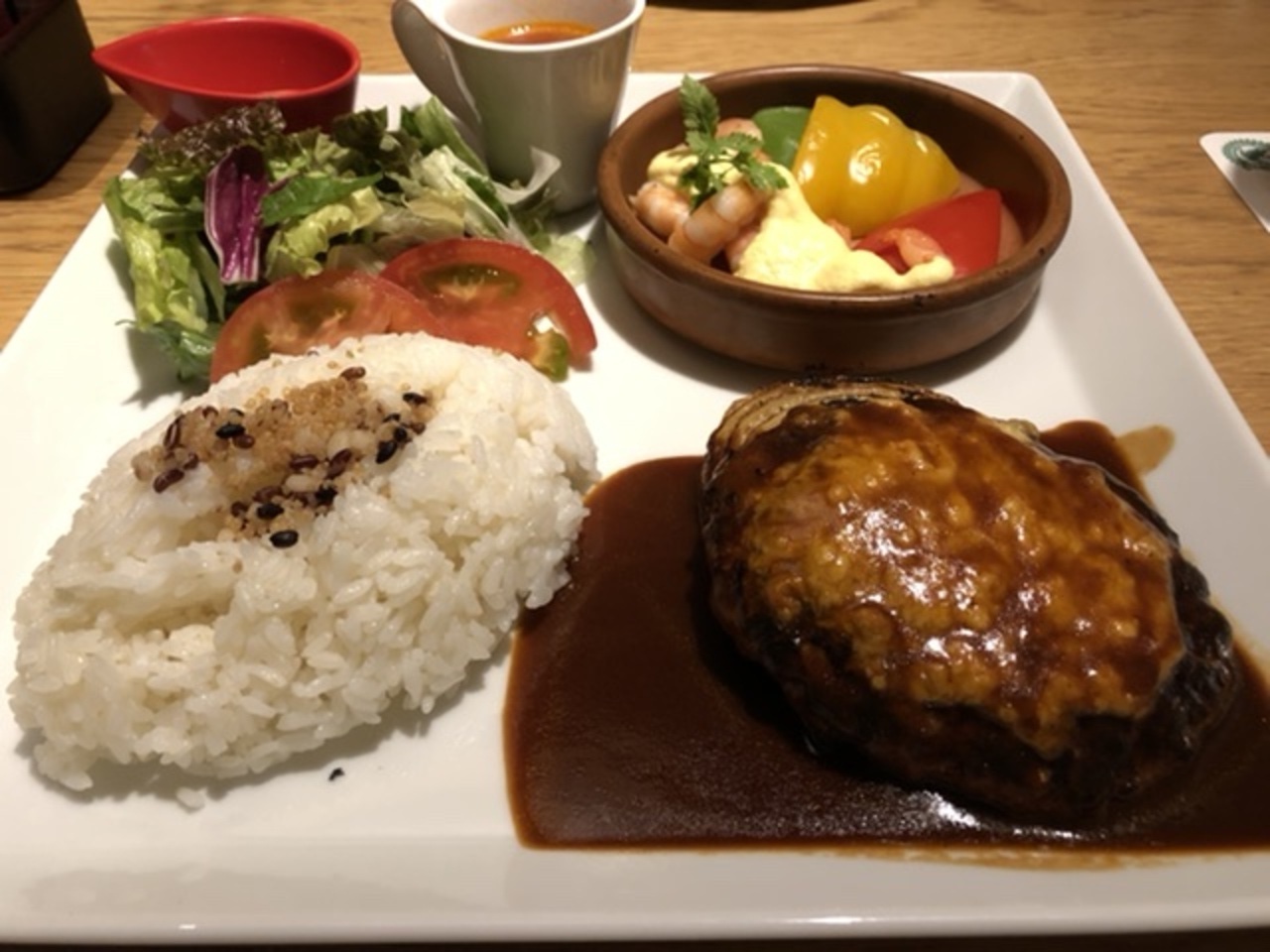 二俣川というか、さちが丘にあるむさしの森コーヒー。最初はパンケーキとコーヒーのイメージのお店でしたが、今は豊富とまではいかなくても、けっこうお食事メニューも増えました。スカイラークだけあって、ハンバーグも美味しかったです。
