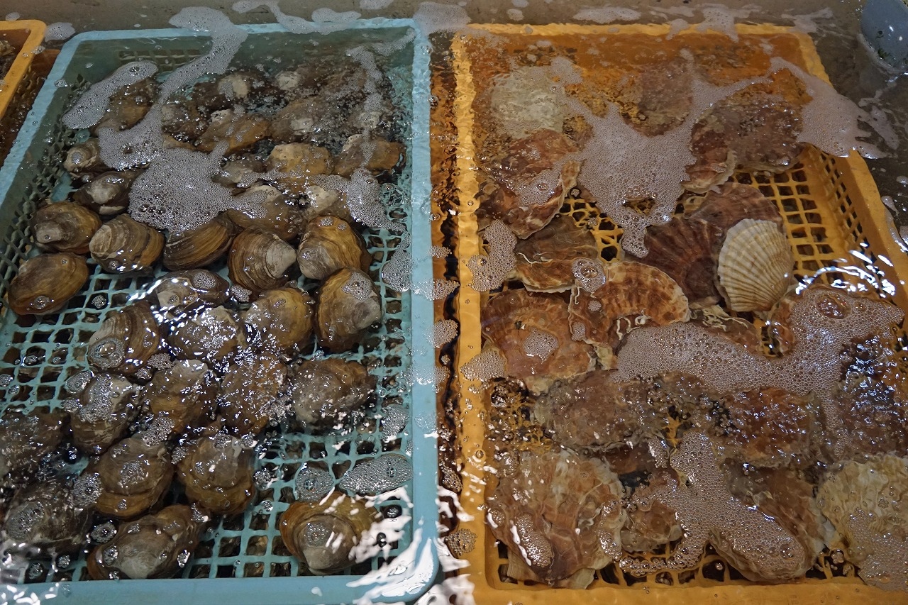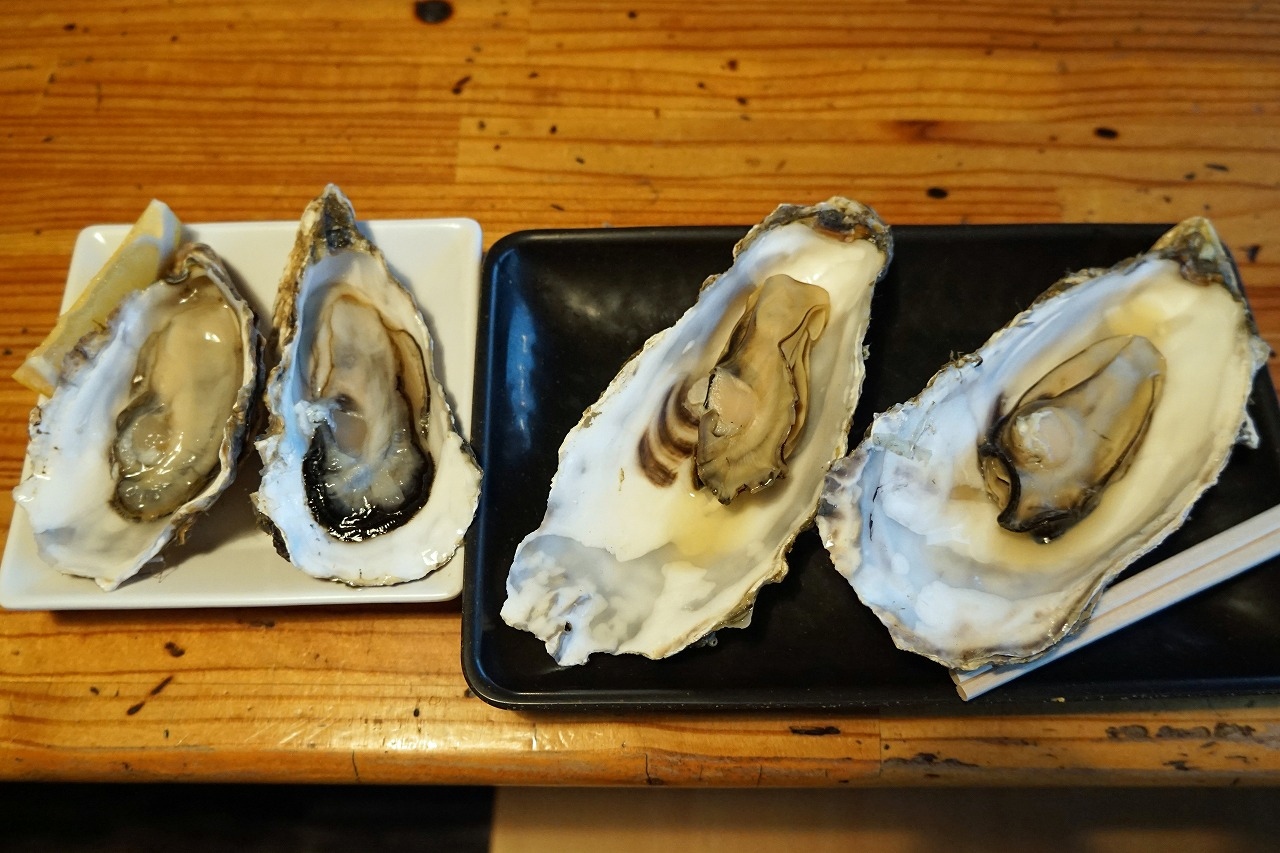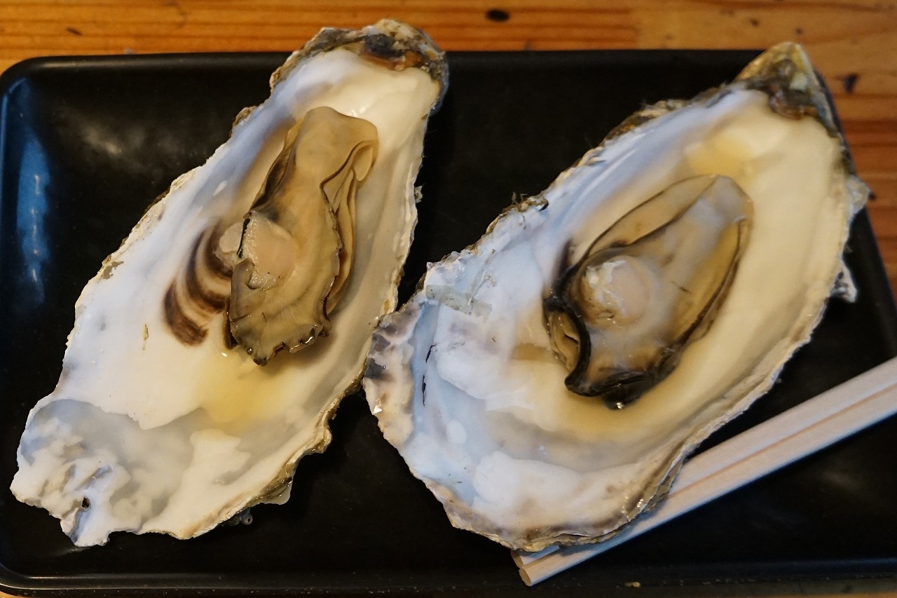 道東のツアーで納沙布岬へ行った帰り道に立ち寄りました。トイレ休憩くらいの時間と思っていたのですが、40分くらい時間がありました。それでも牡蠣を食べる時間はないだろうと諦めていましたが、添乗員さんが事前に注文を受け付けてくれて、到着と同時に焼きガキと生ガキを食べることが出来ました。1皿に生ガキ2個か焼きガキ2個で1皿500円でした。本当は炭火焼きも楽しみたいところですが、厚岸で地元の牡蠣が食べられるだけでよしとします。厚岸のオリジナルの「カキえもん」「マルえもん」「弁天かき」の3種類のうち、この日食べられたのはマルえもんでした。通常カキは冬の季節のものですが、厚岸では厚岸湖で養殖されているので1年中食べられるということです。湖があるということも今回初めて知りました。