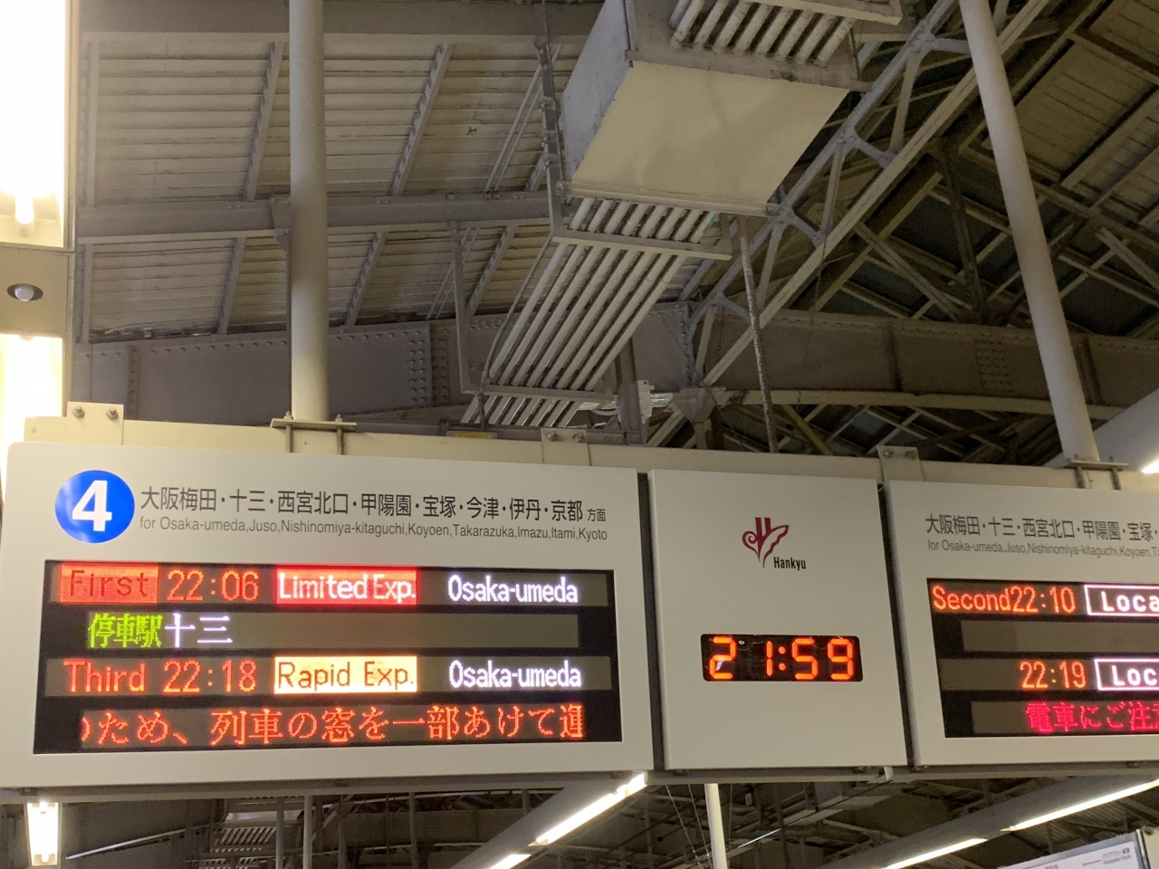午後1時過ぎに「十三駅」から「神戸三宮駅」