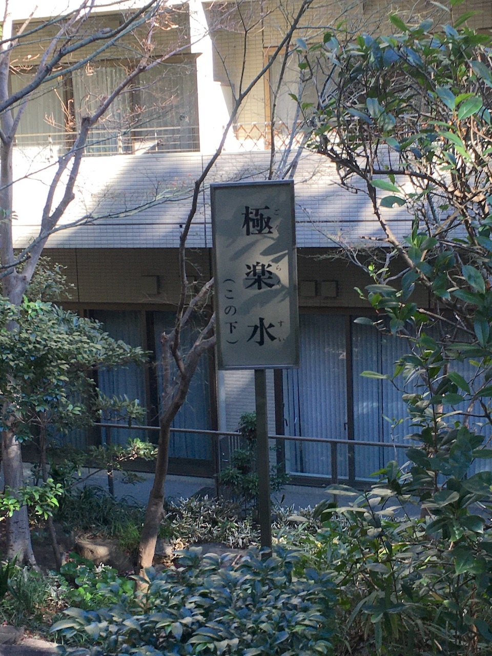湧き水跡には極楽水という名前があり、小石川七福神巡りの札所の一つになっています。