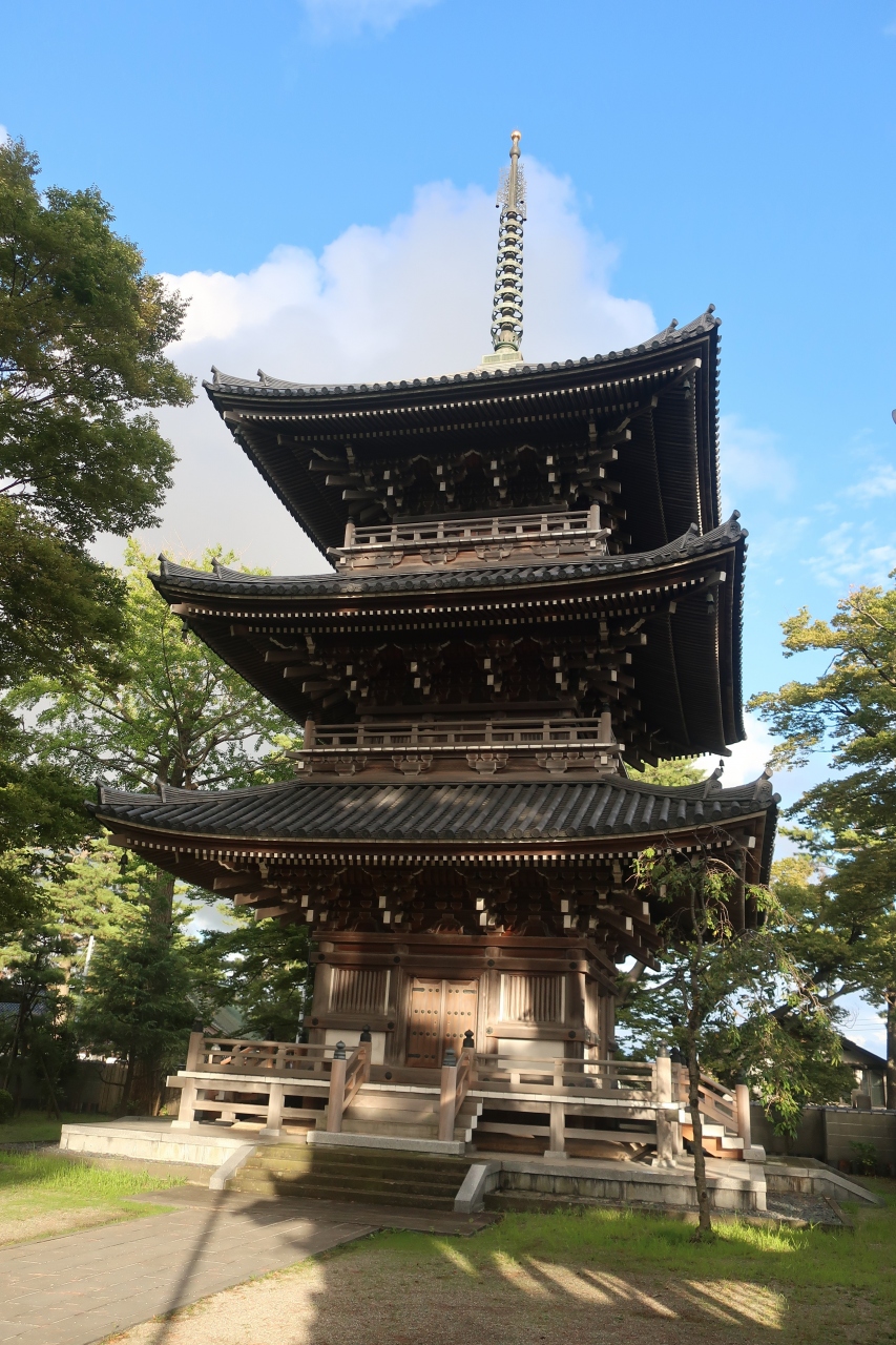 酒田観光で町をレンタサイクルで走り回っている時に大きな三重塔が目について立ち寄ってみました。