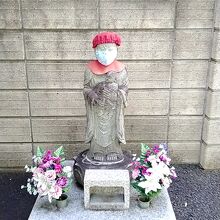 門の前にマスクをして赤ちゃんを抱いたお地蔵さまがいらっしゃいました。穏やかな表情に癒されたのですが、早く、コロナが治まって、マスクをしていないお地蔵様のお顔を見てみたいと思いました。