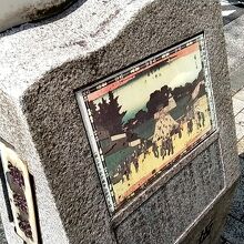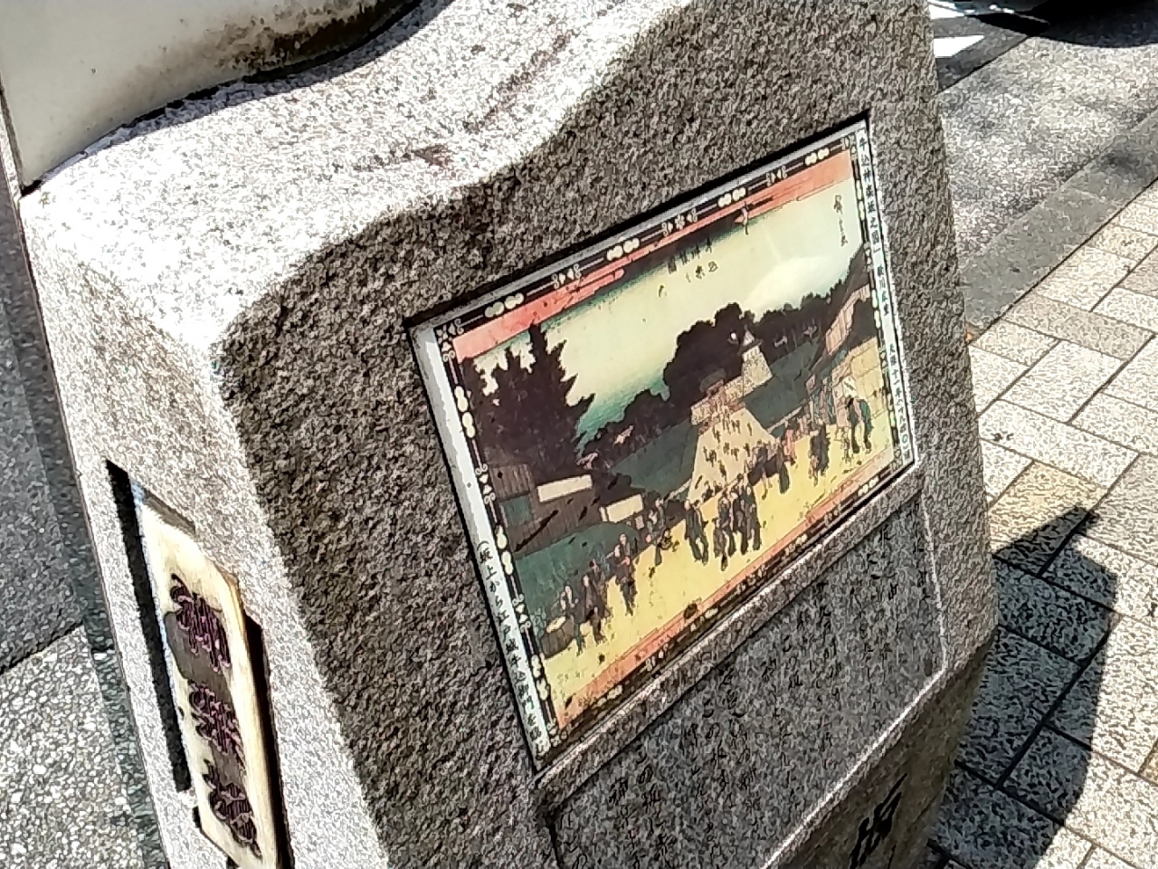 神楽坂通りの歩道にこの絵があるのですが、とても小さな絵図で、歩道の端の低い位置にあるので、気が付く方は少ないと思います。
