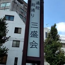 伝通院の前の大通りの歩道の両脇に、「伝通院前通り三盛会」という立派な表示がありました。