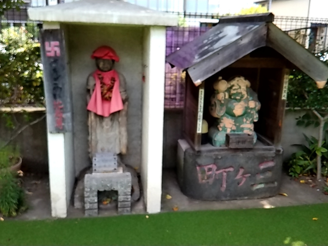 今回は、園庭の工事が終わって、大黒天の中に入ることができました。とうがらし地蔵は、園庭の東側にありました。素朴な雰囲気のお地蔵さまでした。