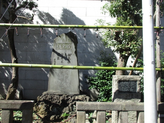 JR浜松町駅から増上寺へ向かう大通りを右折し芝神明商店街から長い参道を進むと大きな鳥居右側にある芝大神宮貯金塚に歩いて5分ぐらいで着きます。貯金塚は米俵の上に立つ大黒天と根気根気何事も根気が彫られた石碑です。由来は関東大震災時どこの銀行もお金が下ろせないなか不動貯金銀行だけが全額払い戻しをし東京復興に貢献した功績を称え建てられたそうです。大黒様がユーモラスな感じで可愛かったです。