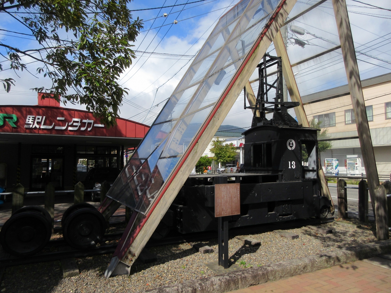 大正4年に営業を開始した草軽電鉄を偲ぶことができるものが、軽井沢駅北口の旧軽井沢駅舎記念館前にも残っています。大正15年に草津・軽井沢間を電化、昭和37年に廃止されるまでの35年間、地元の人や旅行客の足として活躍してきた機関車と車輪です。現在の列車と比べるとこじんまりしていますが、力強さが感じられる機関車と車輪です。草軽電鉄の歴史を伝える貴重な展示だと思います。