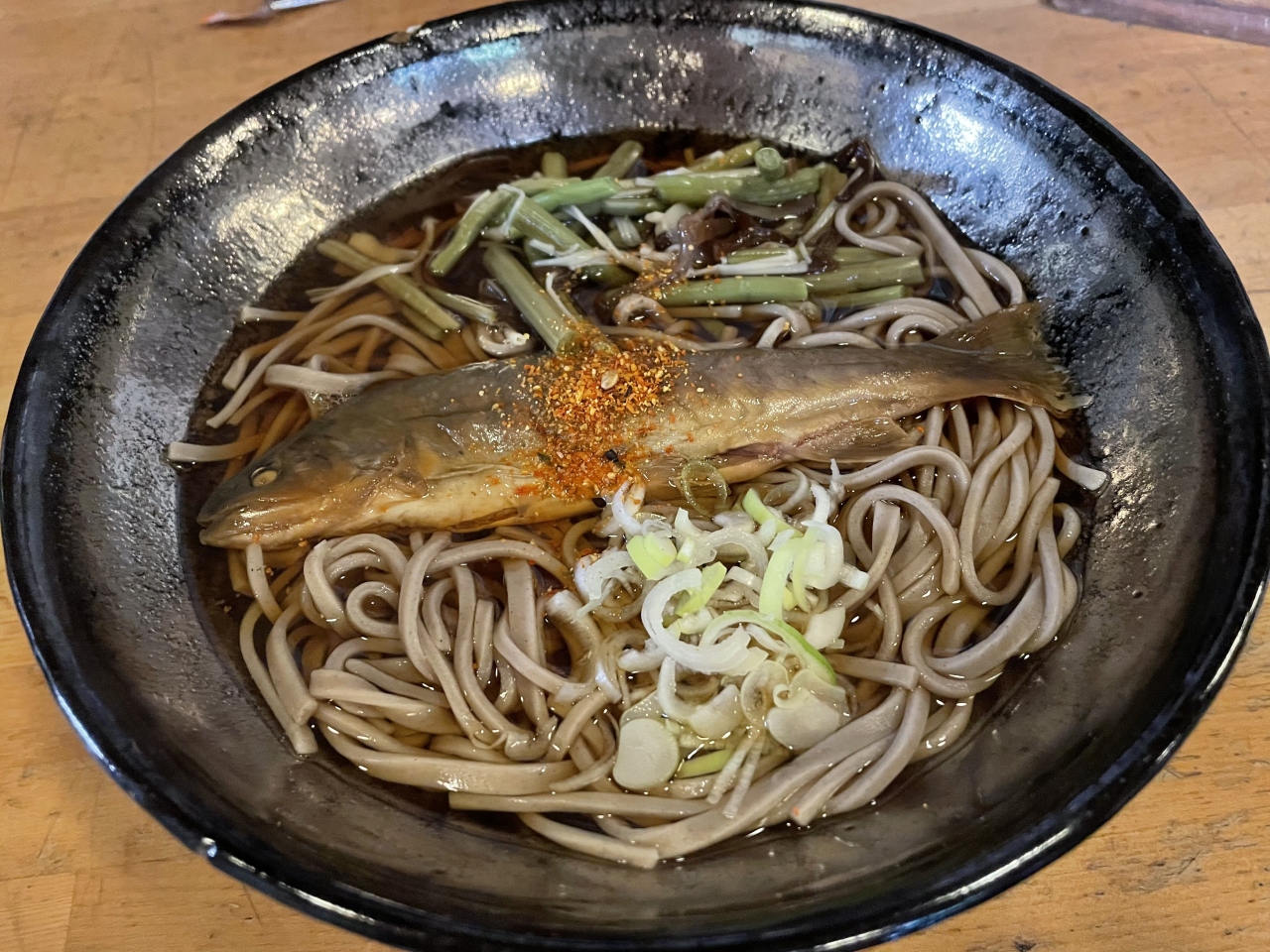 時間がなかったので岩魚が乗ってる嘉門次蕎麦にしました