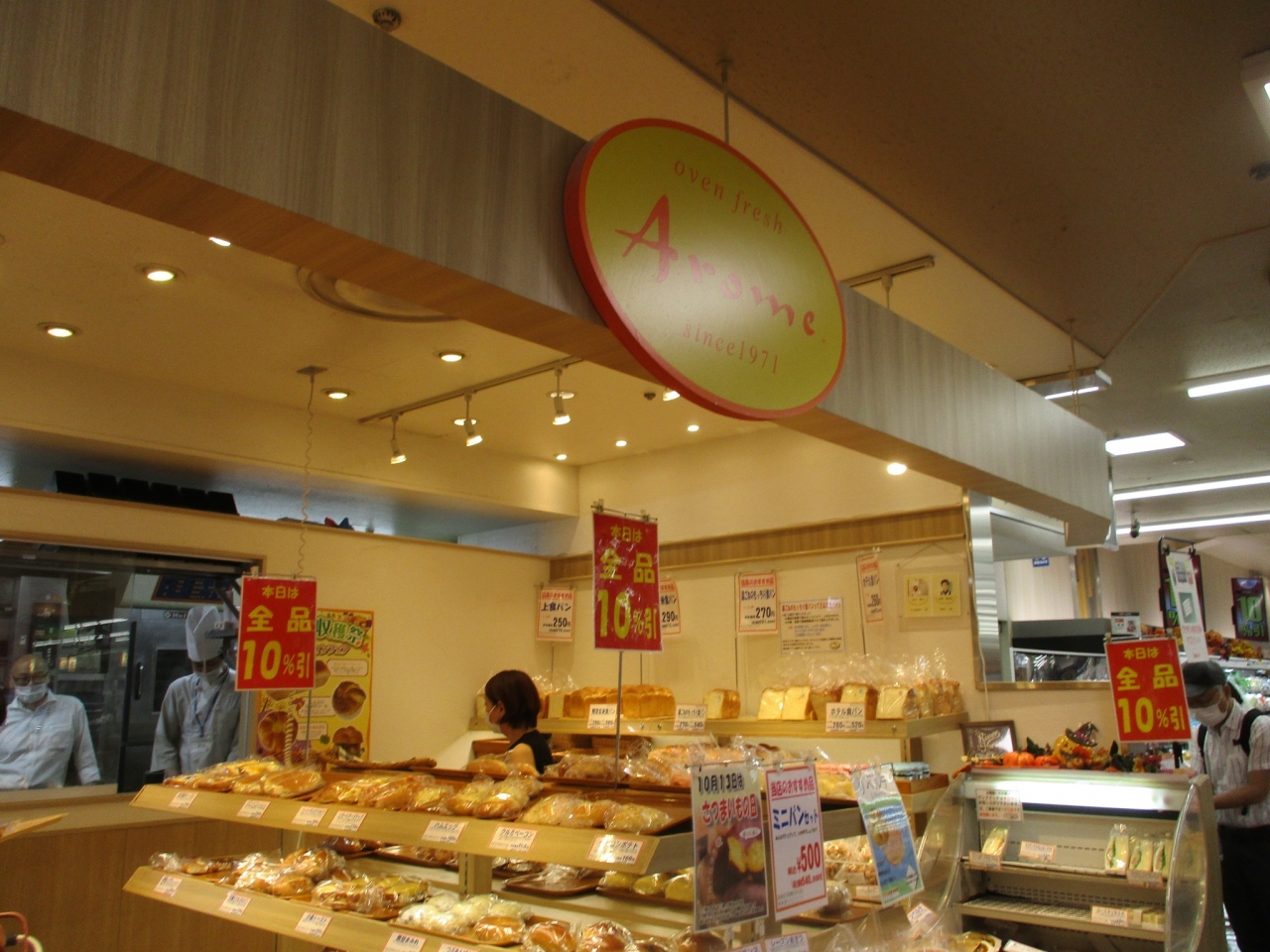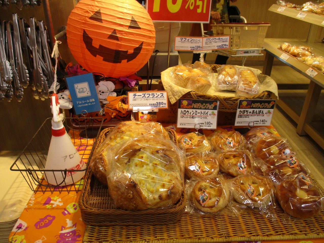 高槻阪急の地下食料品売り場にあるアローム。老舗のパン屋さんです。夕方訪れたら少しお安くなっていました。店頭にはハロウィンにちなんだパンが並んでいました。かぼちゃの形のミートパイなど買いました。この前もこのパンを買っておいしかったのでリピートです。