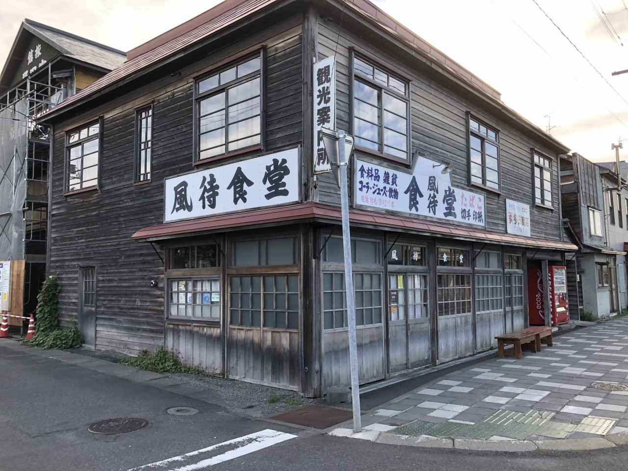 旧増毛駅前にある観光案内所です。元々は雑貨屋だったそうで、看板がそのまま残っています。「風待食堂」と大きく掲げられているので、何も知らなければ、食堂かと思ってしまいそうです。この時は、営業時間が15:00までに早まっており、既に閉館していて中には入れず残念でした。建物も増毛を代表する歴史的な木造建築物です。