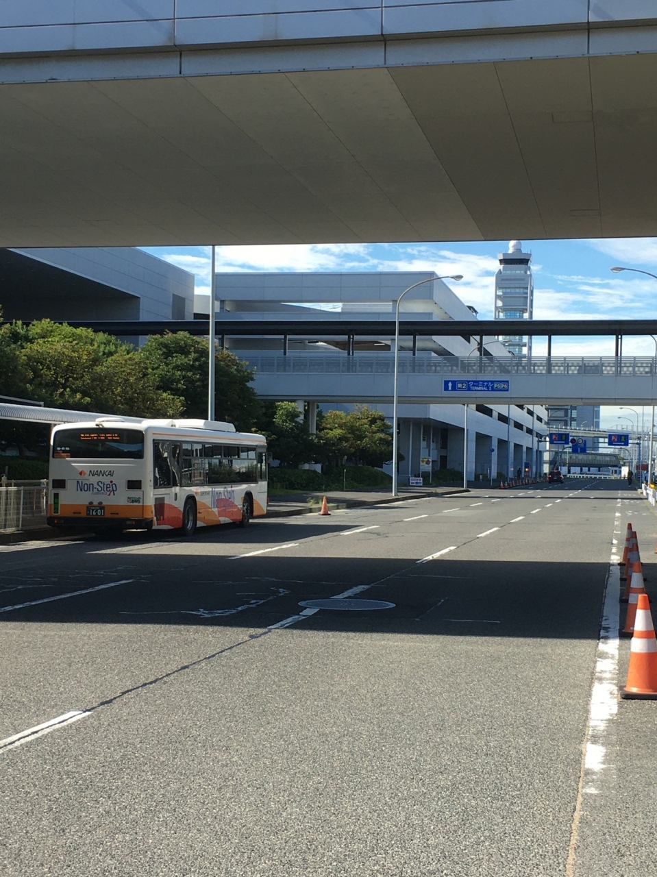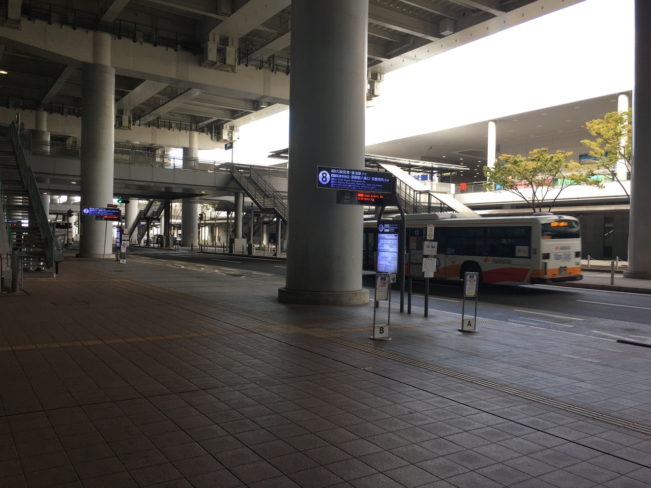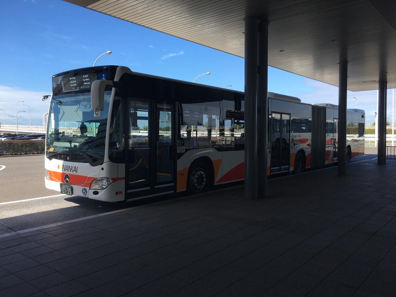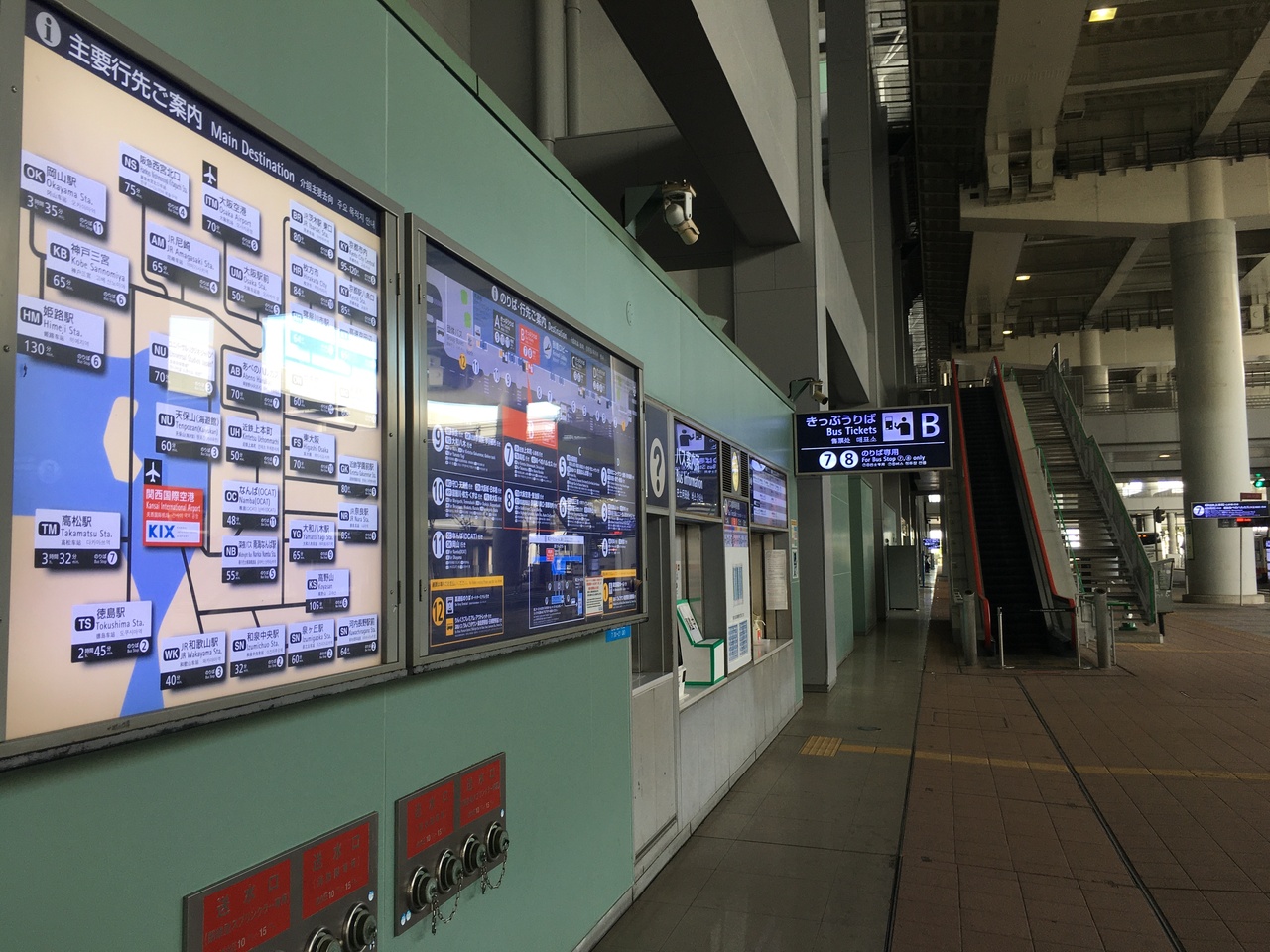 駅の改札口を出、左側に行くと下の道路沿いにはリムジンバス乗り場があり、大阪市内や京都、和歌山等へ行くとこが出来ます。路線バス乗り場も少し先にありました。第一ターミナルと第二ターミナルは離れているので無料の空港間バスがあります。