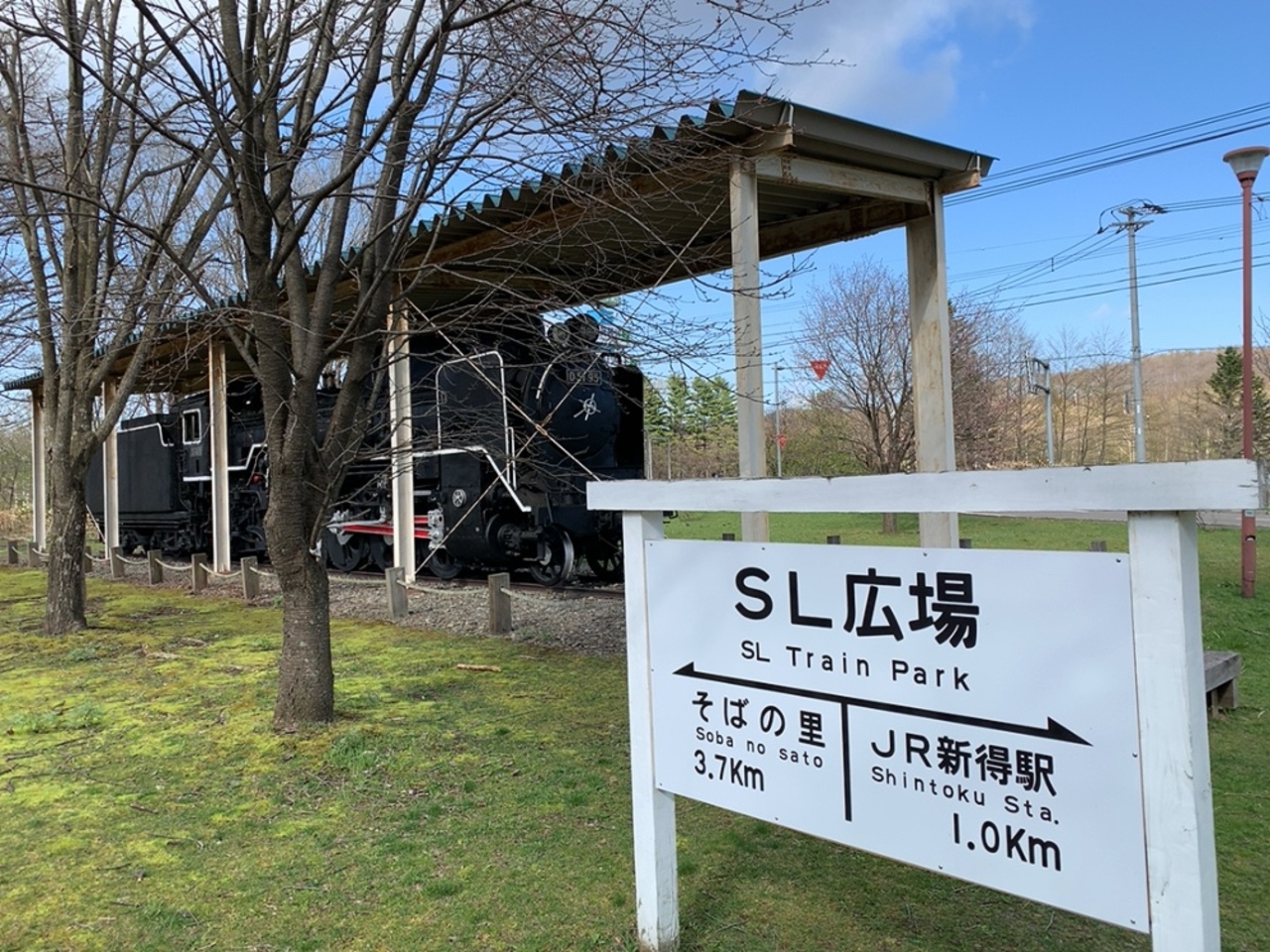 GWに北海道旅行で、富良野から帯広をレンタカードライブした日に立ち寄りました。 新得そばをランチに食べた後に車で走っていたら、大きなポール看板に新得の見どころが書かれたものが建てられていて、すぐ横にはSLのD51が展示されています。
