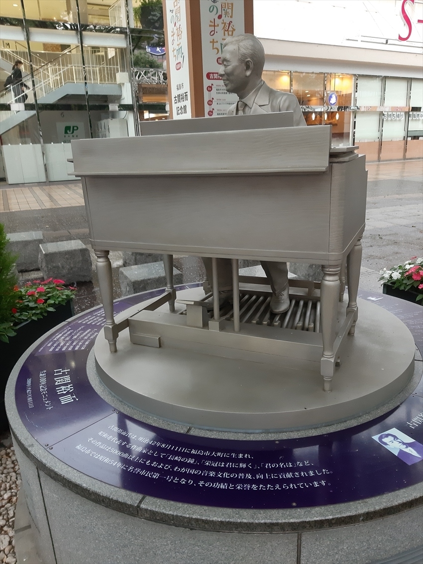 温和な笑みを浮かべつつハモンド・オルガンを弾く姿を象った像は、小関が作曲した歌のあれこれを思い出させてくれます。